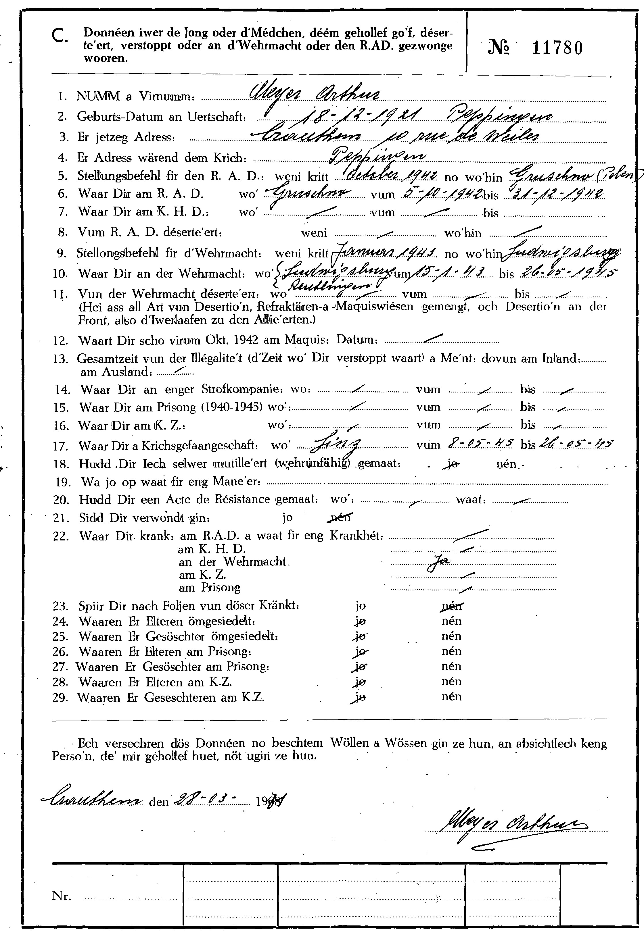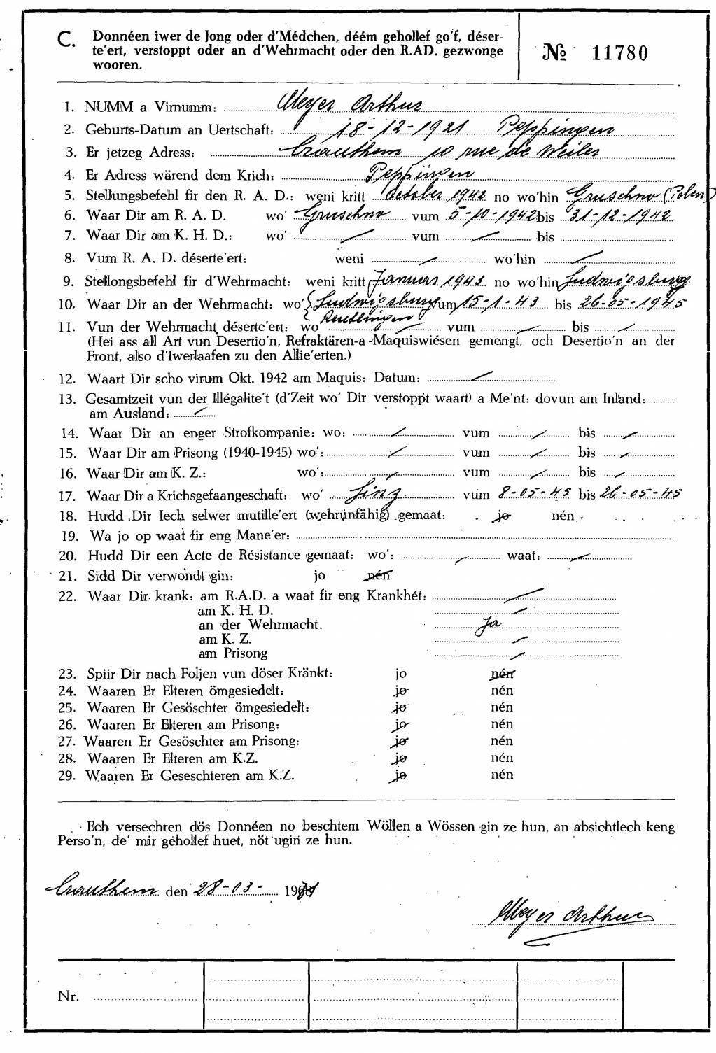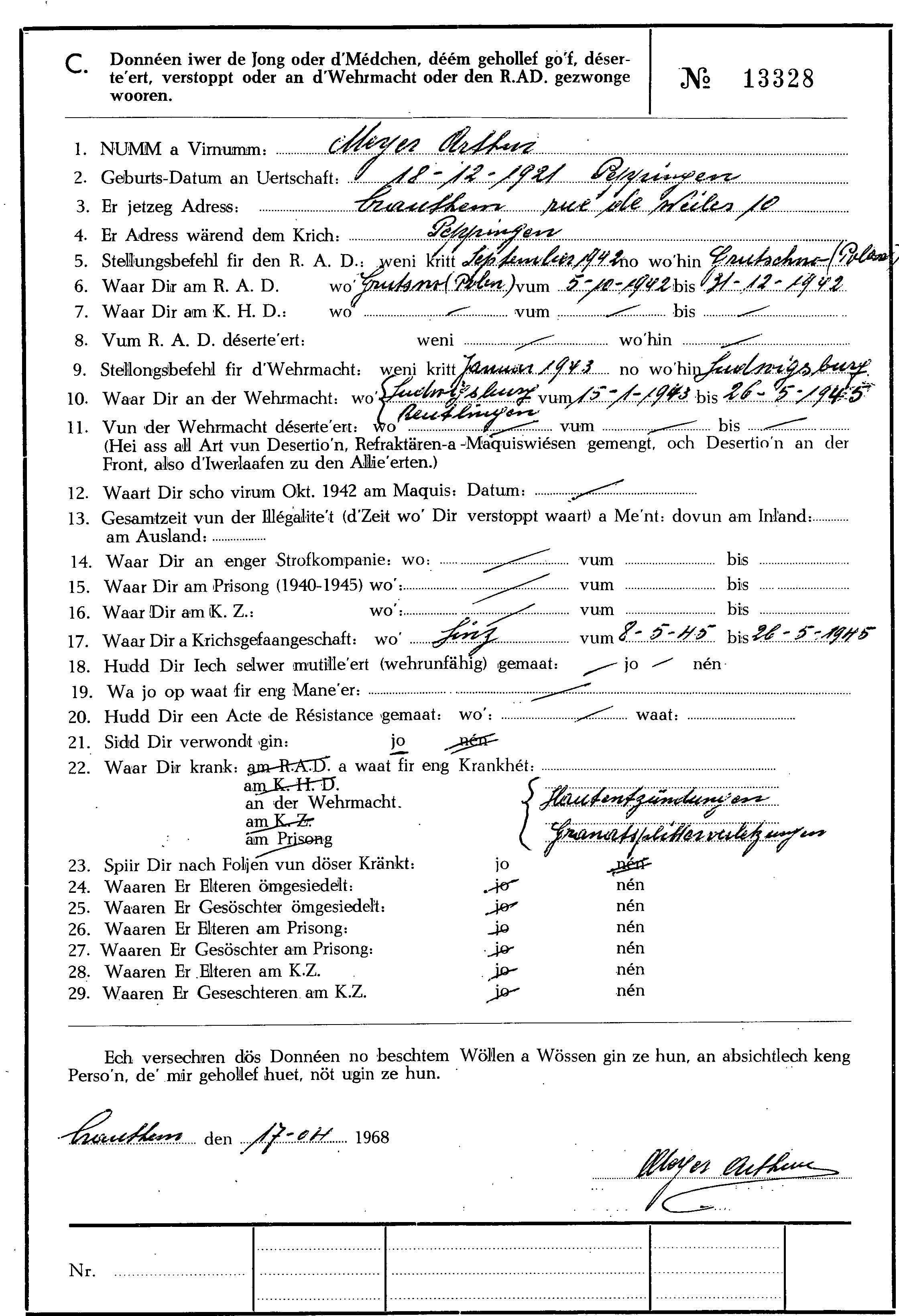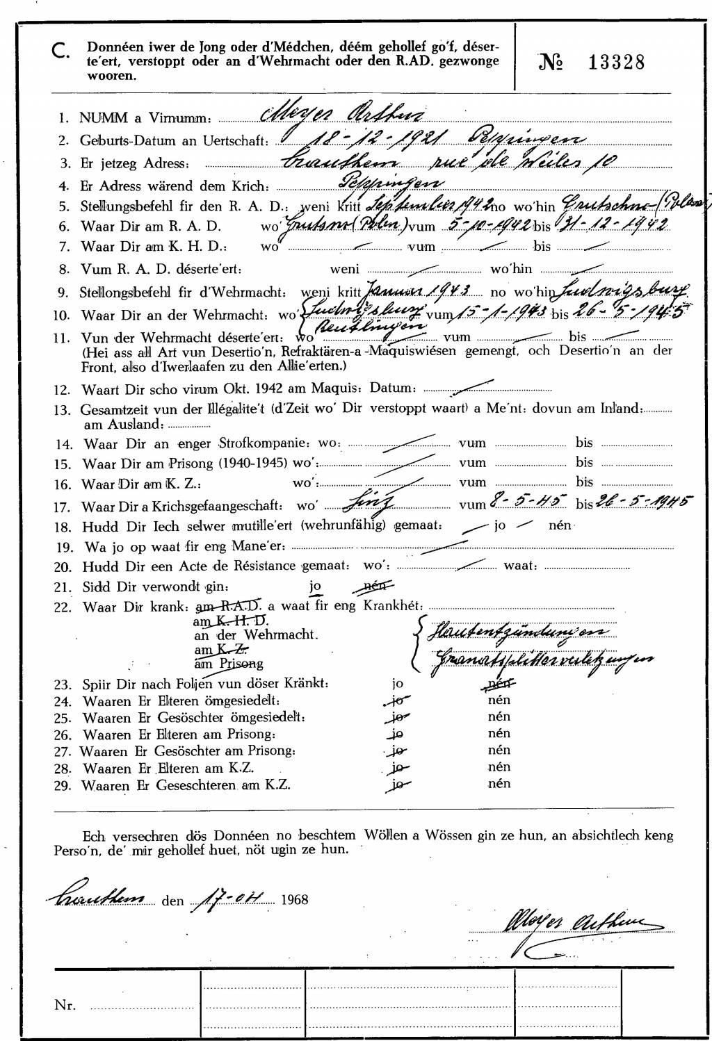 Nom, prénom, nom pendant l'occupation