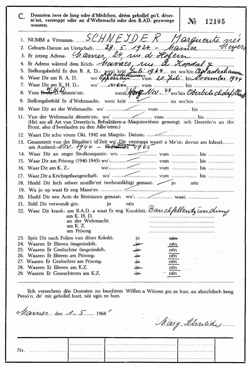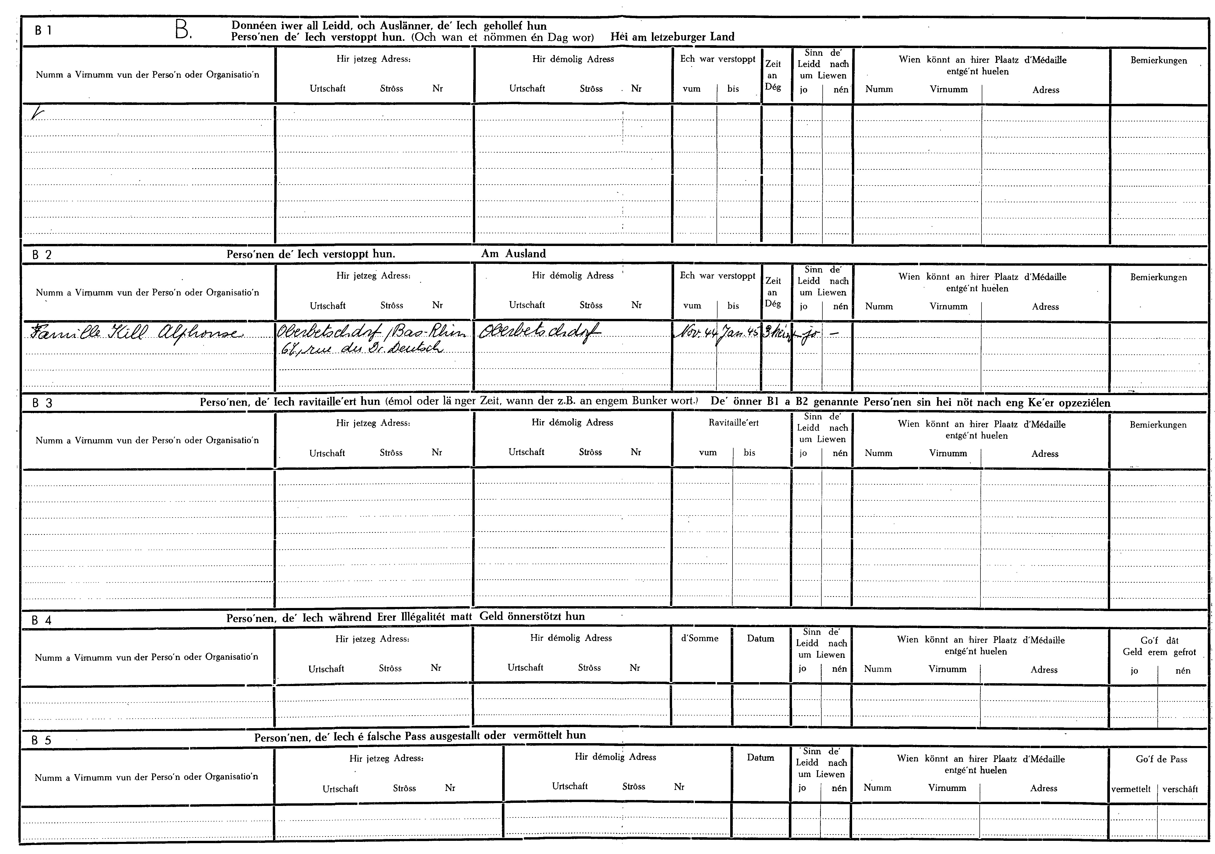 Nom, prénom, nom pendant l'occupation