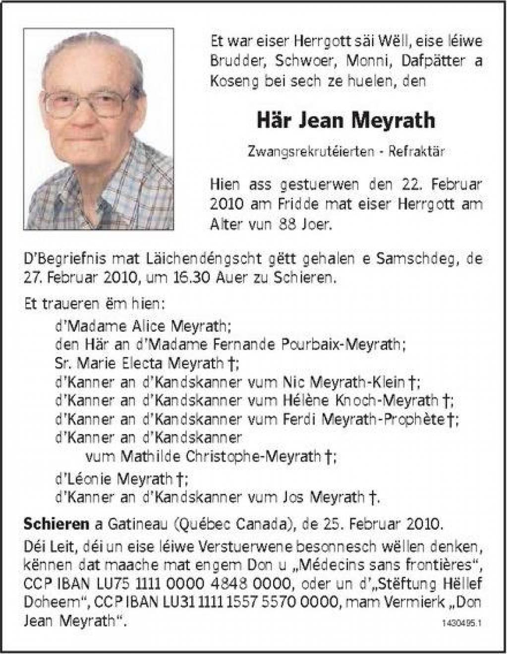 Divers Flies70.pdf Télécharger le document Meyrath Jean SCHIEREN.JPG Télécharger le document Meyrath Jean Meyrath Jean.jpg Télécharger le document Meyrath Jean1.jpg Télécharger le document Meyrath Jean2.jpg Télécharger le document
