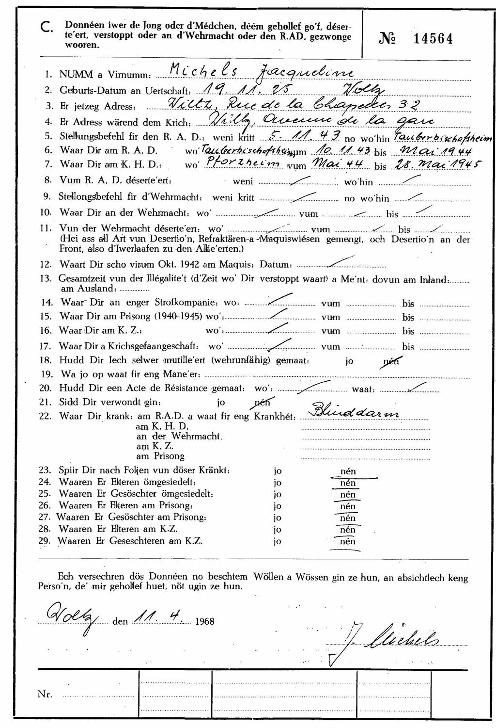 Nom, prénom, nom pendant l'occupation