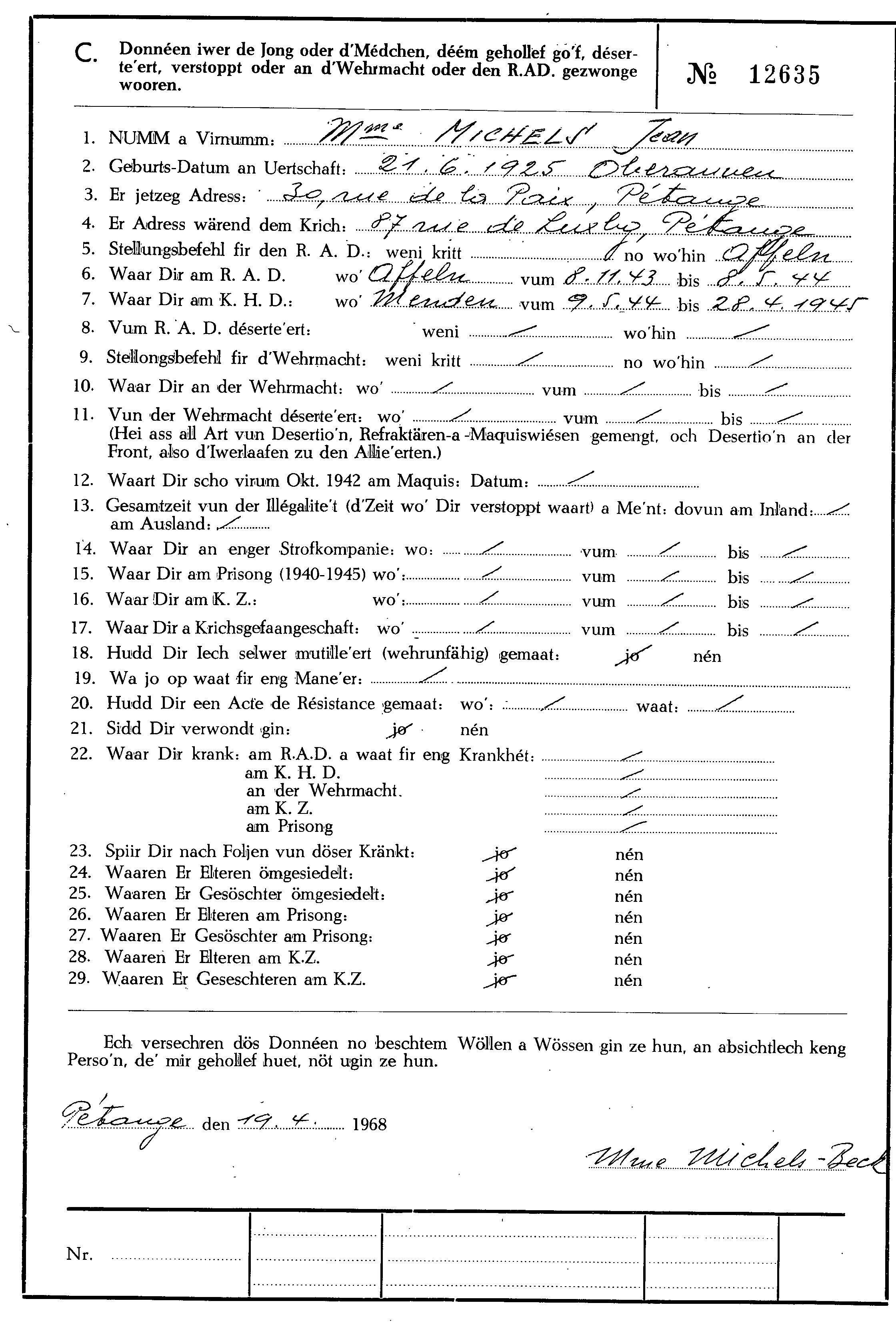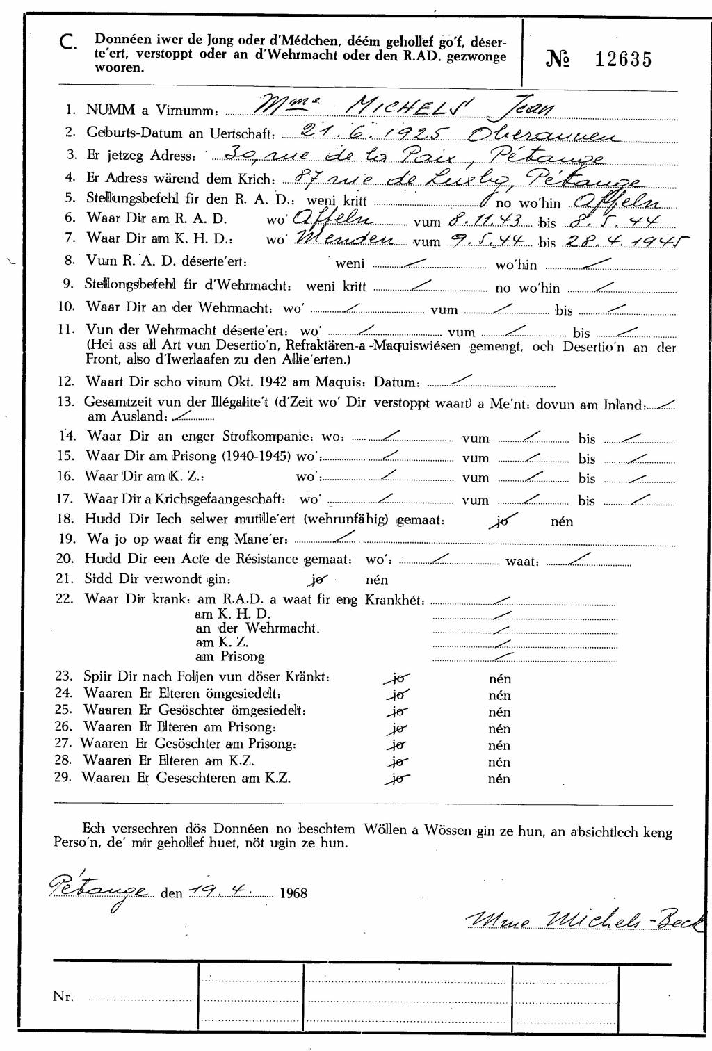 Nom, prénom, nom pendant l'occupation