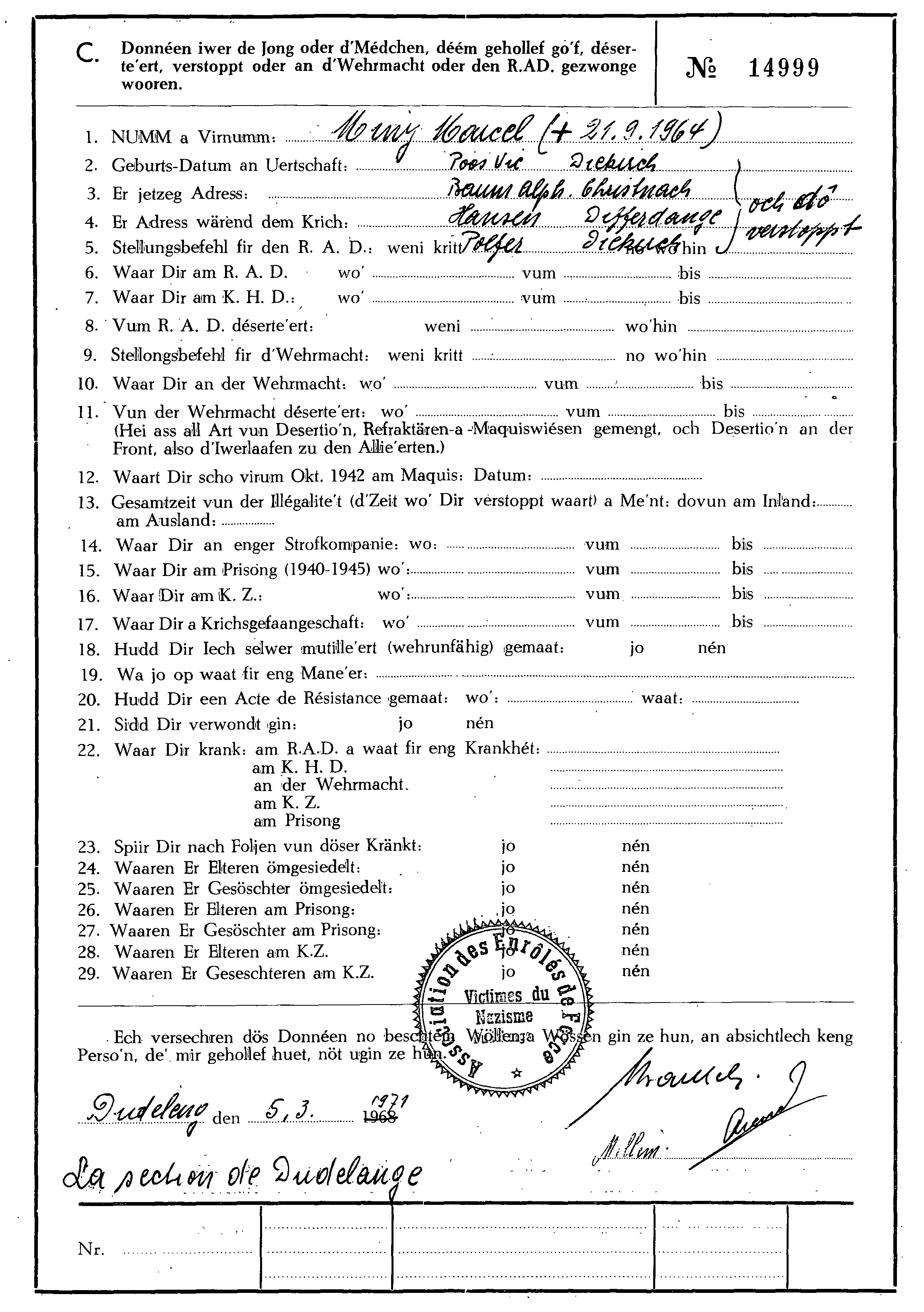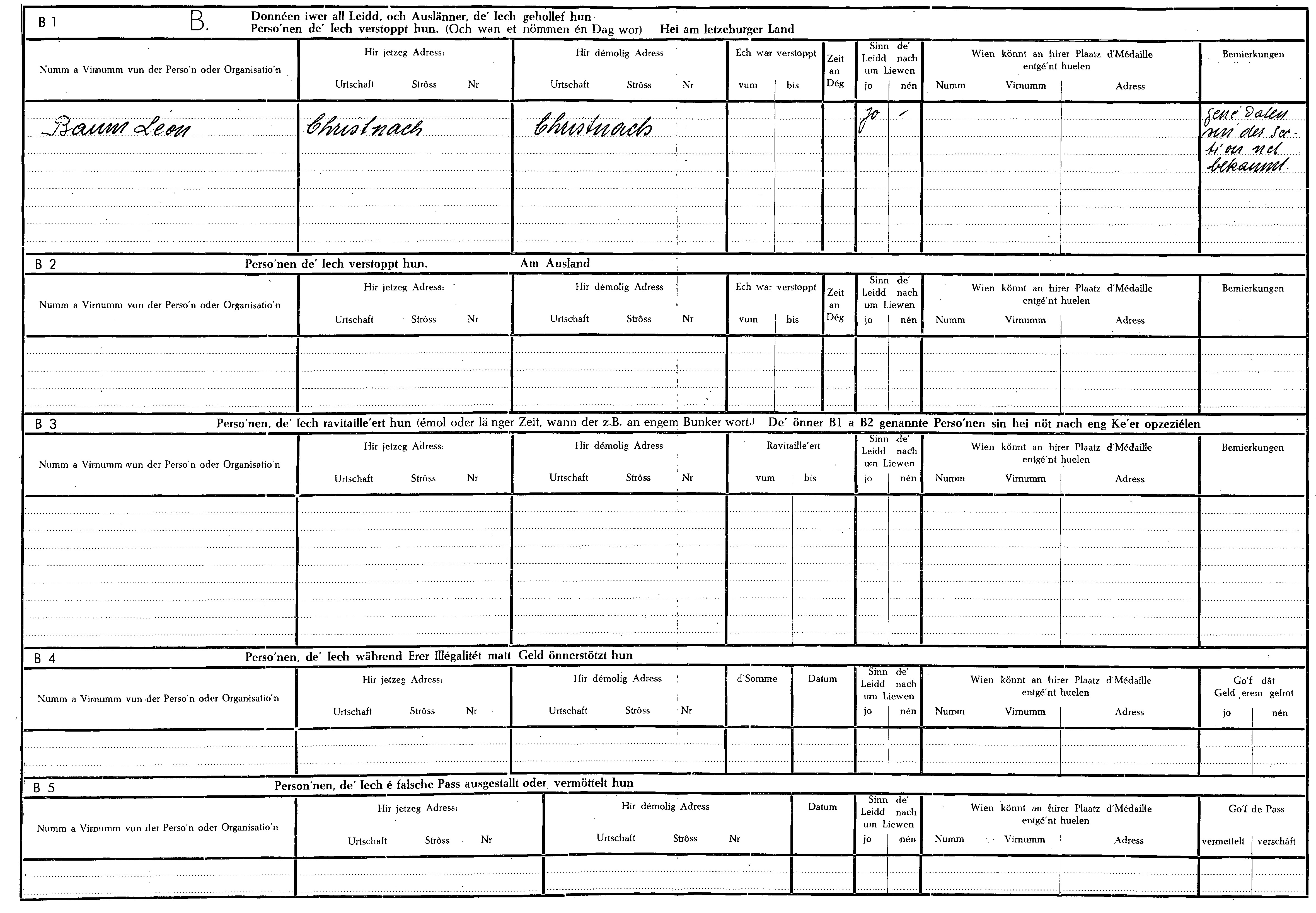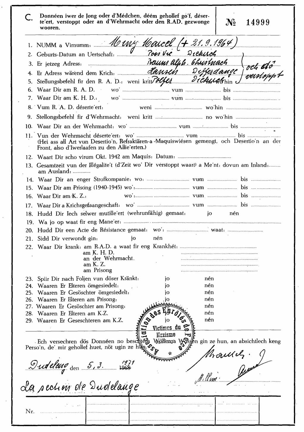 Nom, prénom, nom pendant l'occupation