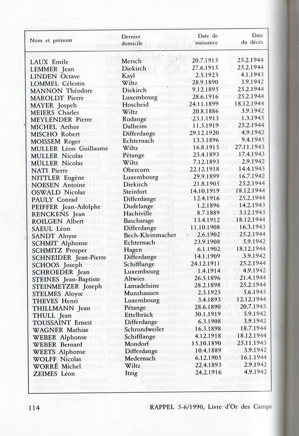 Divers Gedenkfeier Differdange LW06092013.pdf Télécharger le document img283.jpg Télécharger le document LPPD Livre Or des Camps.jpg Télécharger le document Mischo Robert.JPG Télécharger le document Morts Allemagne rappatrié.pdf Télécharger le document Tote Streik LW 30082012.jpg Télécharger le document