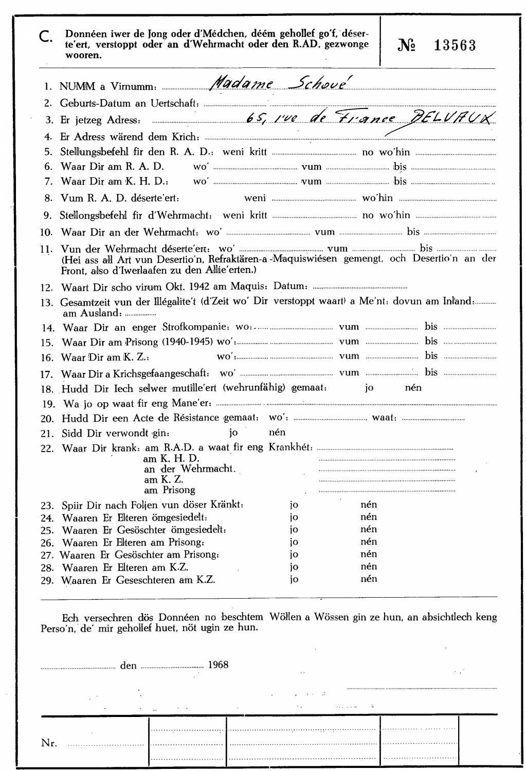 Nom, prénom, nom pendant l'occupation