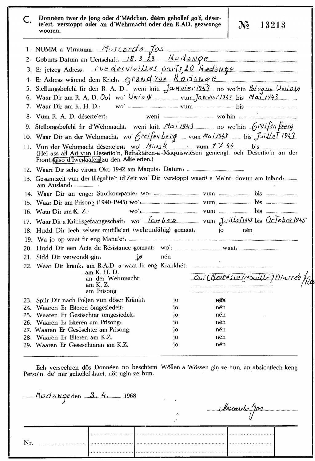 Nom, prénom, nom pendant l'occupation