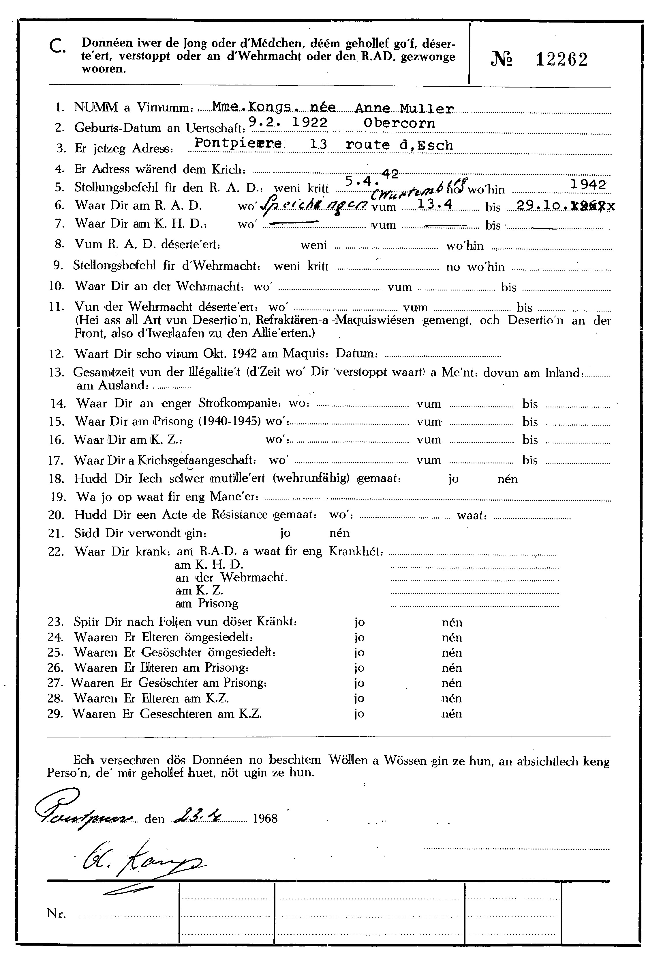 Nom, prénom, nom pendant l'occupation