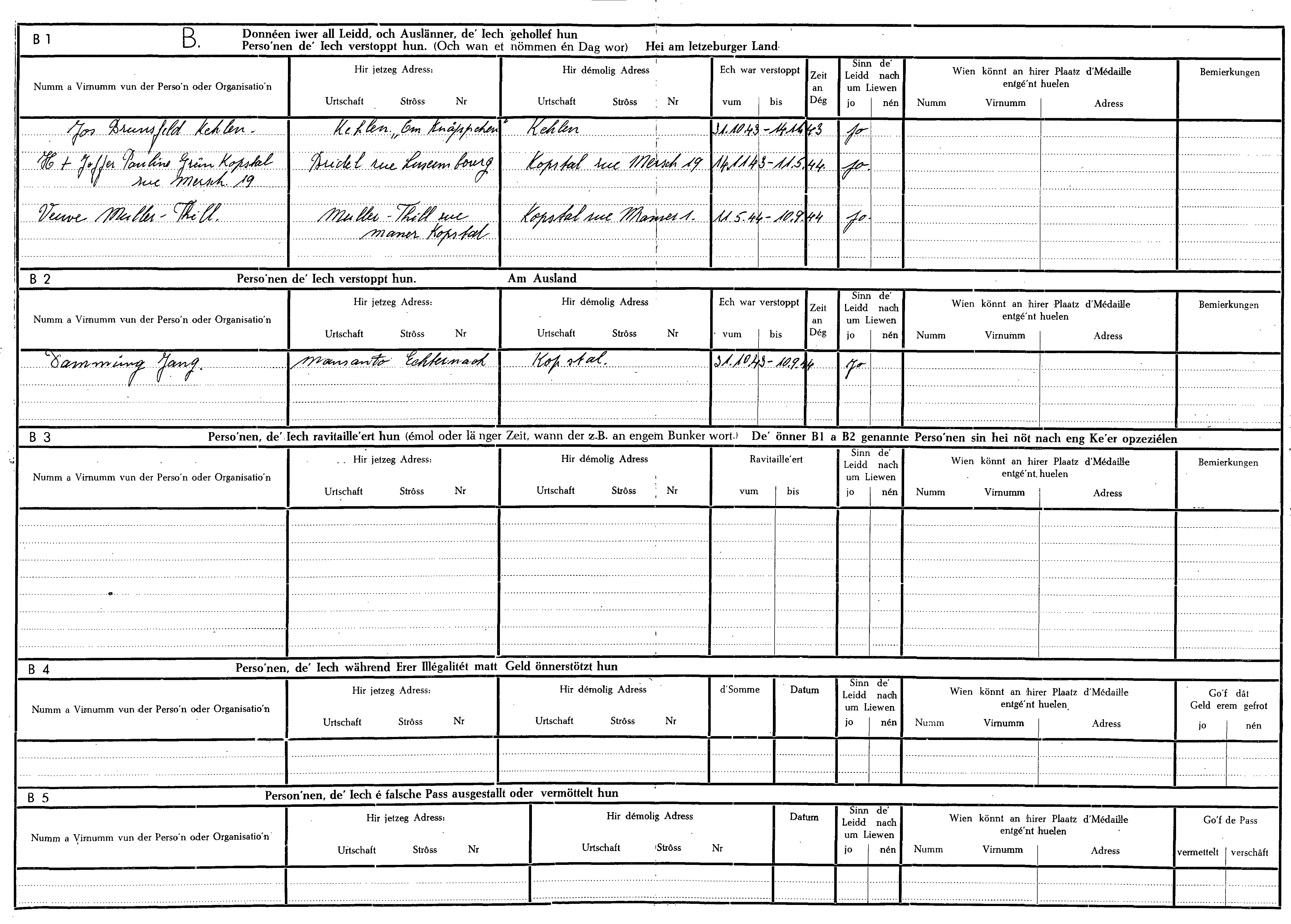 Nom, prénom, nom pendant l'occupation