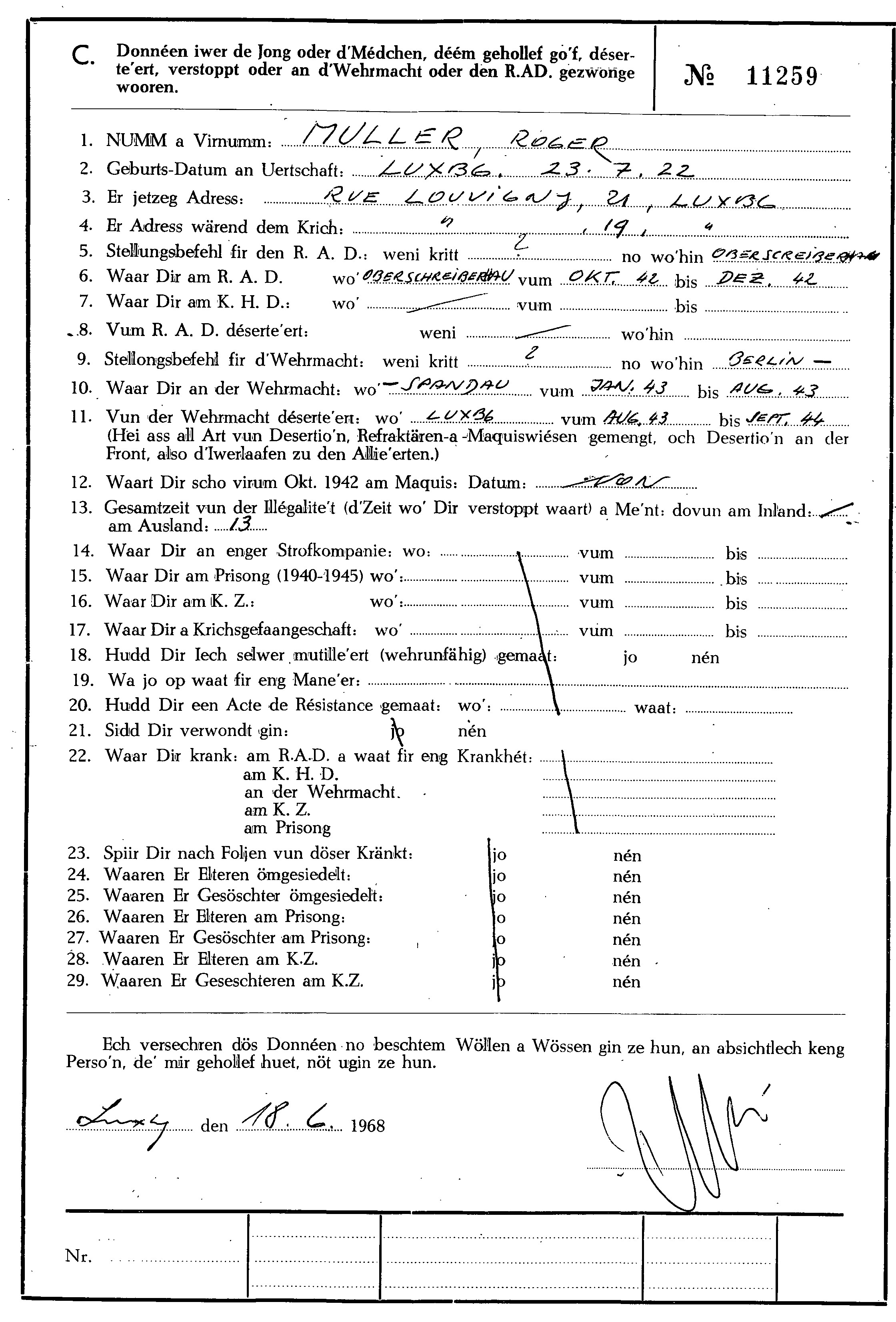 Nom, prénom, nom pendant l'occupation