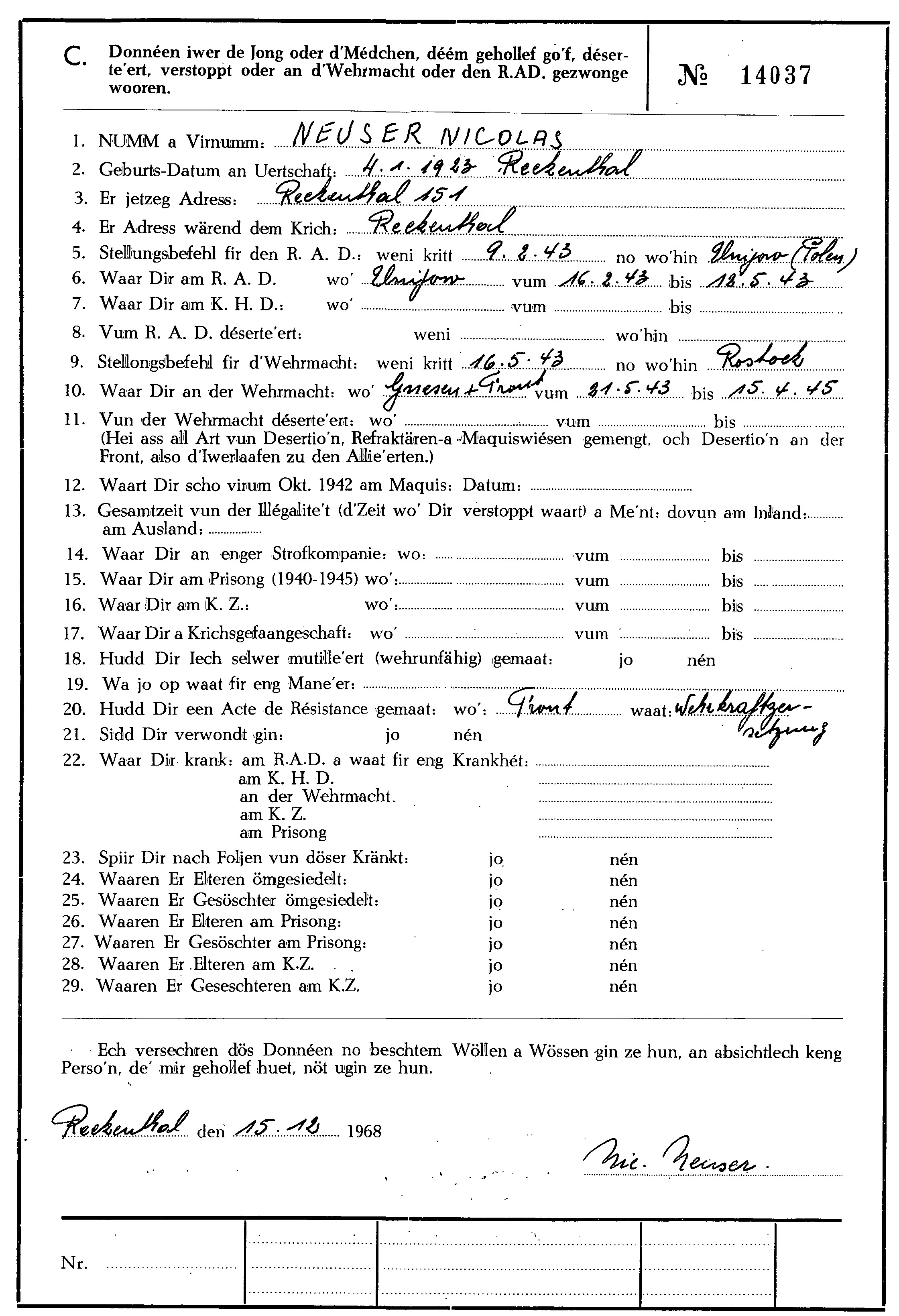 Nom, prénom, nom pendant l'occupation