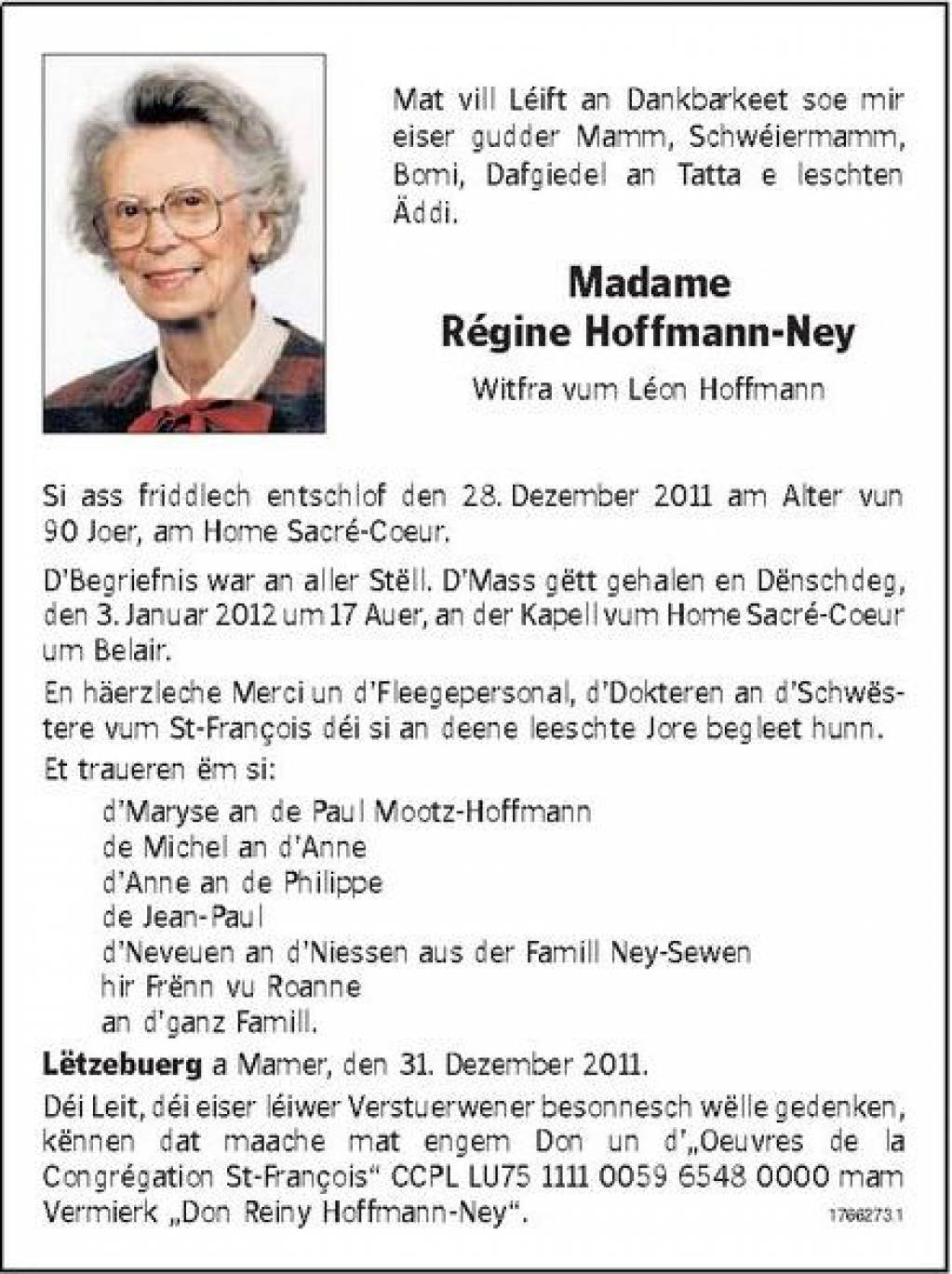 Ney Régine16081921Mamer Ney Régine_WeggefaehrtinKZ_Bauler.jpg Télécharger le document Ney Régine.jpg Télécharger le document