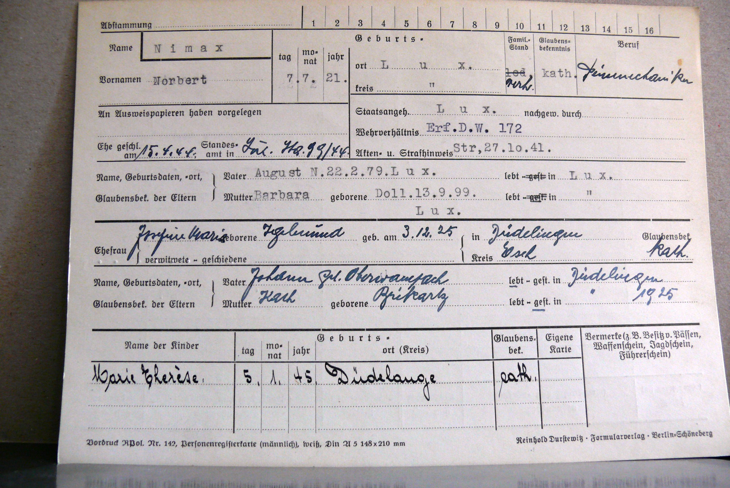 Nom, prénom, nom pendant l'occupation