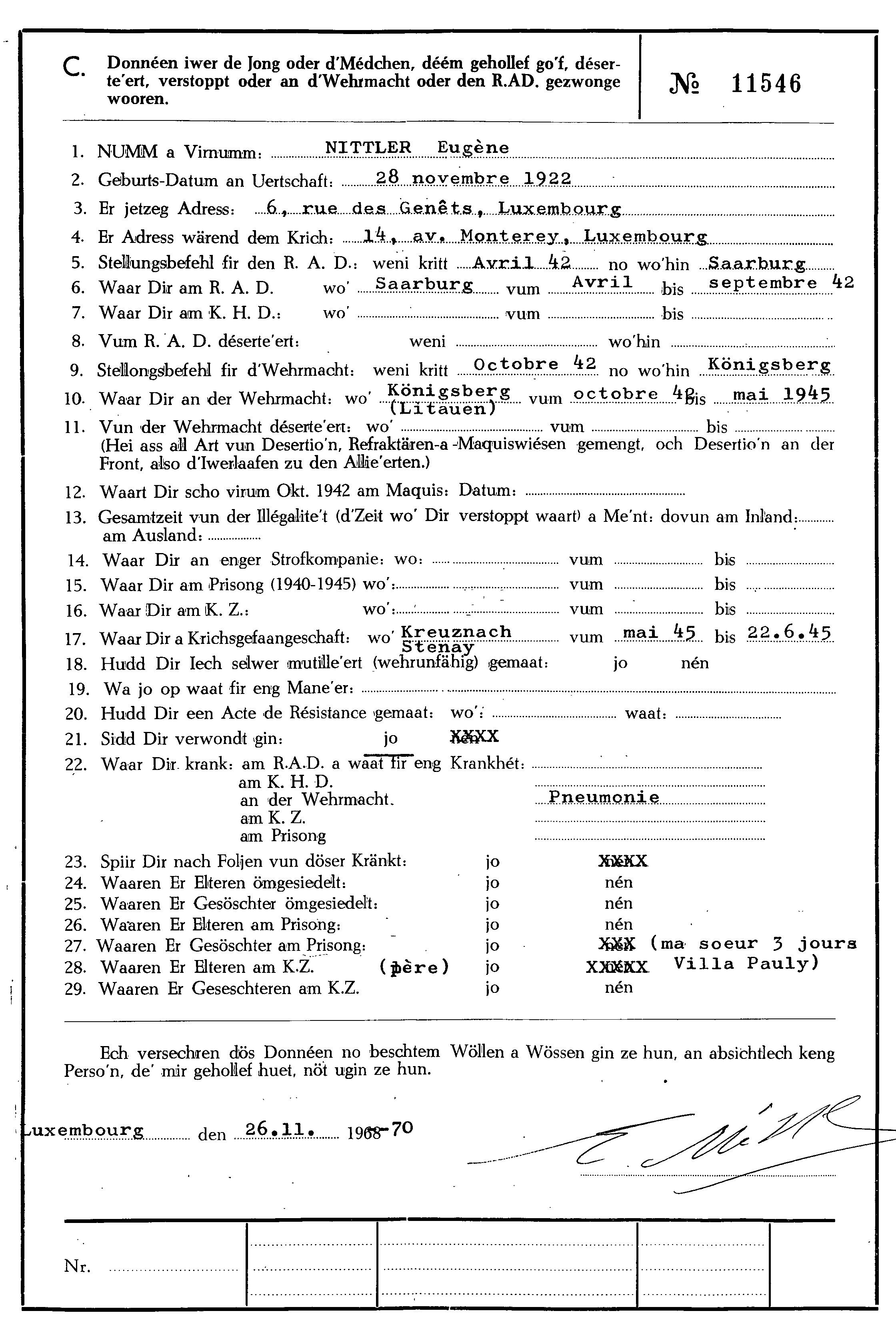 Nom, prénom, nom pendant l'occupation