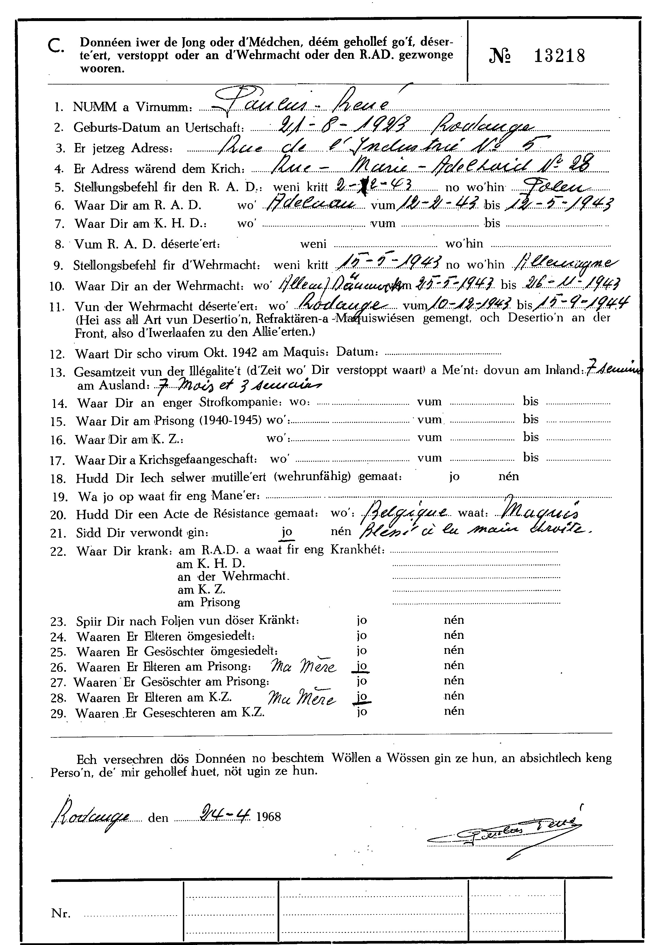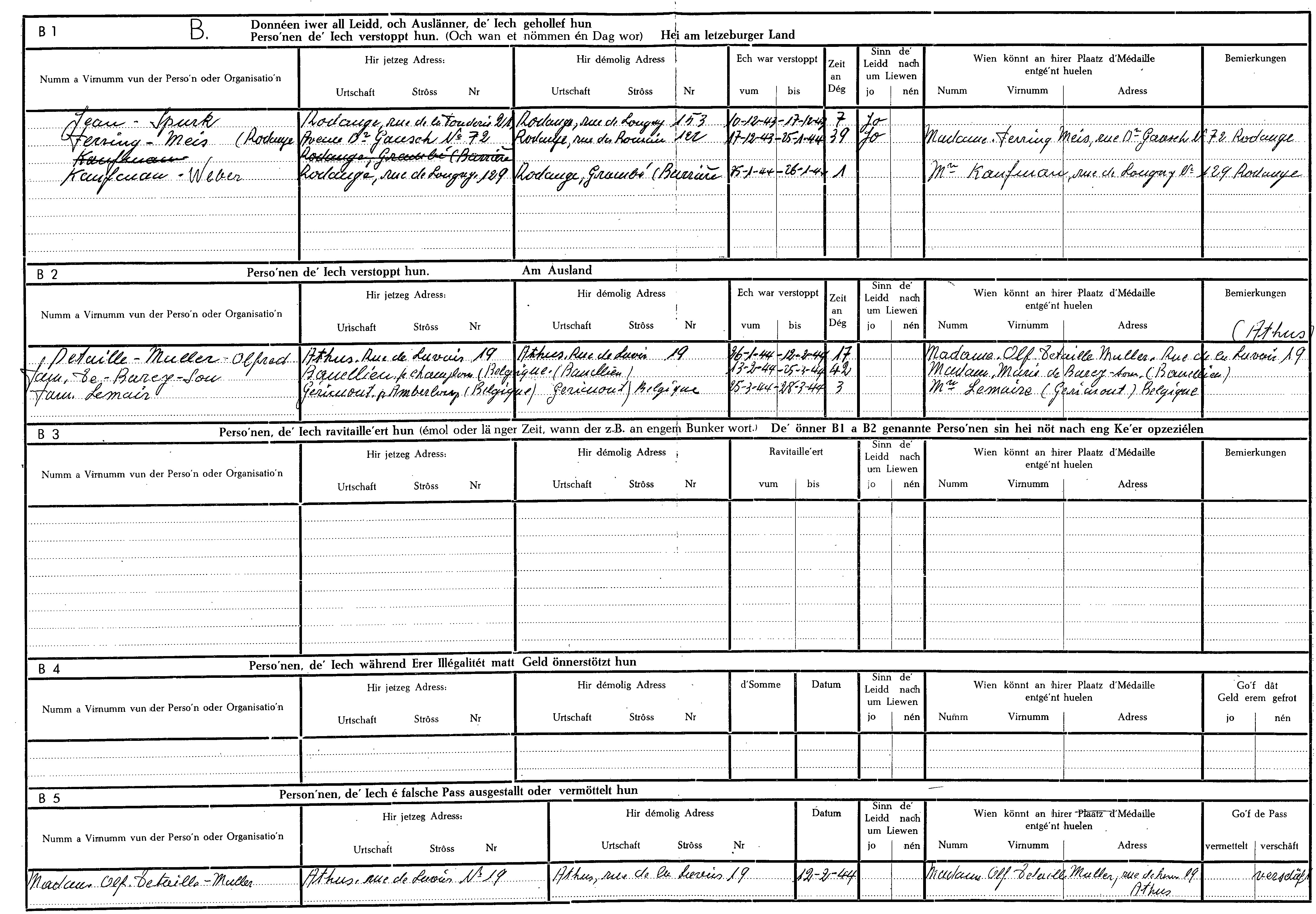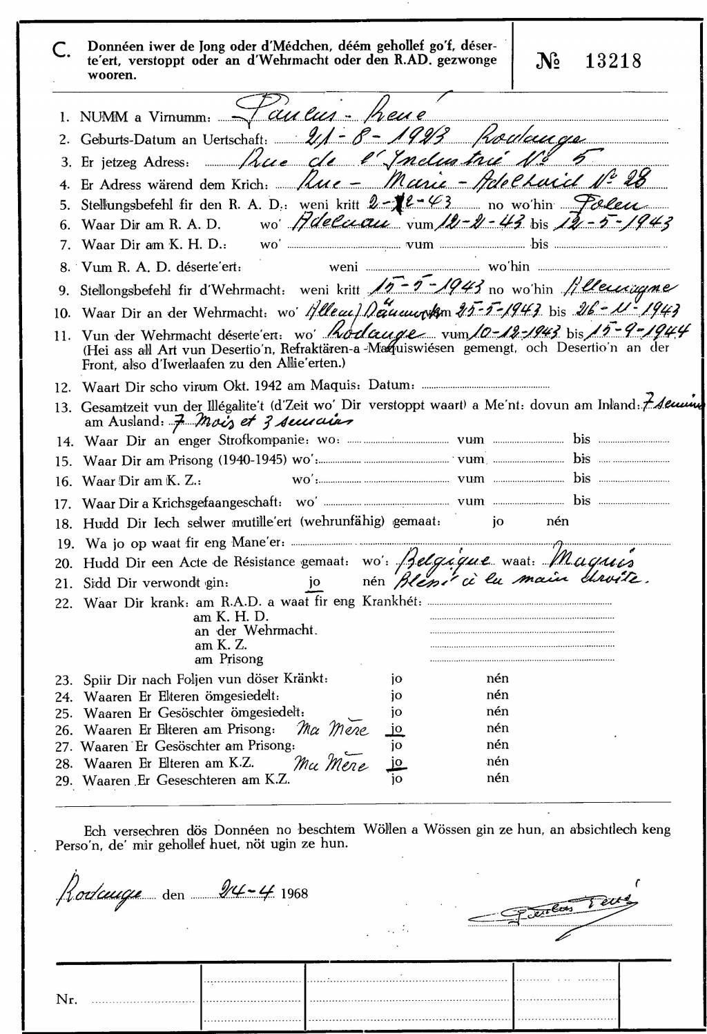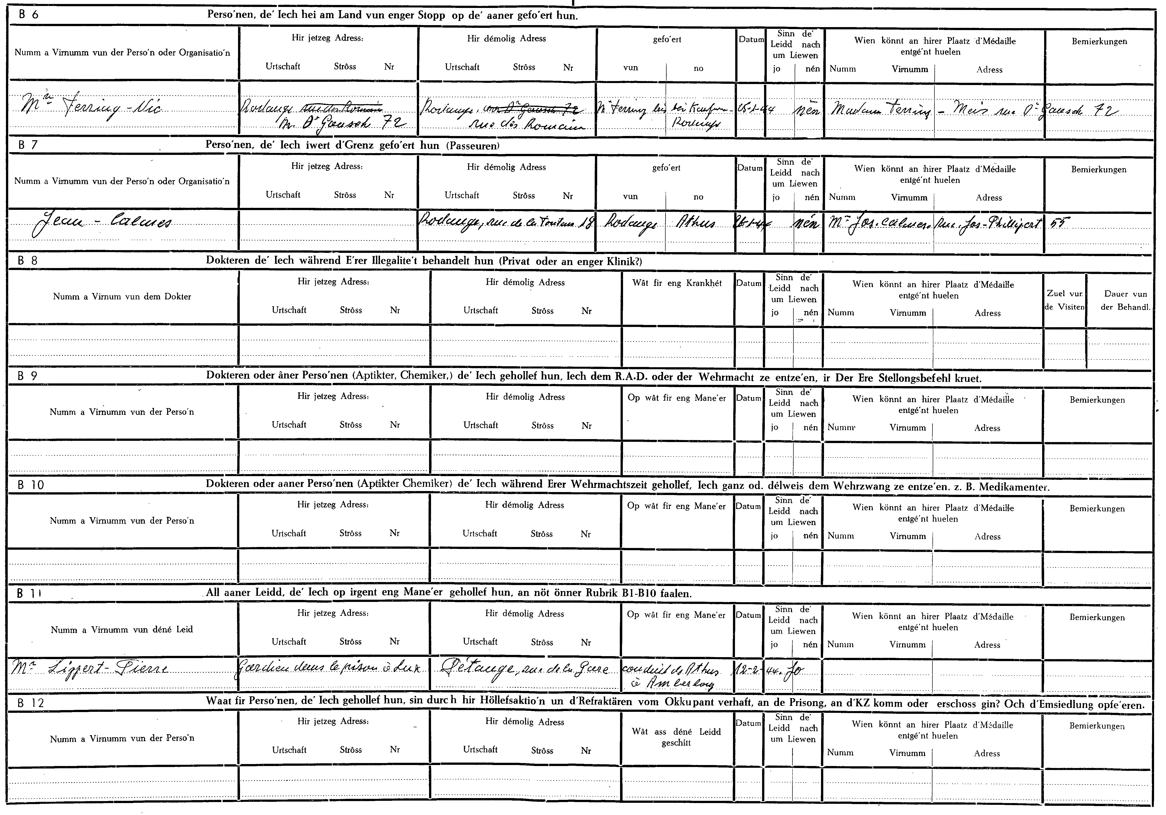 Nom, prénom, nom pendant l'occupation