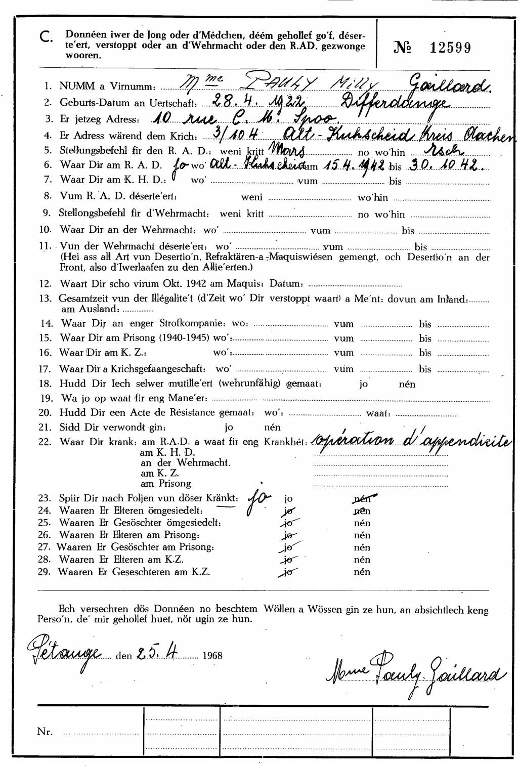 Nom, prénom, nom pendant l'occupation
