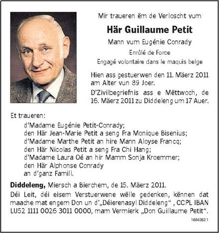 Divers Petit Guillaume.jpeg Télécharger le document Petit Guillaume 26061921 Dudelange 1.jpg Télécharger le document 2.jpg Télécharger le document