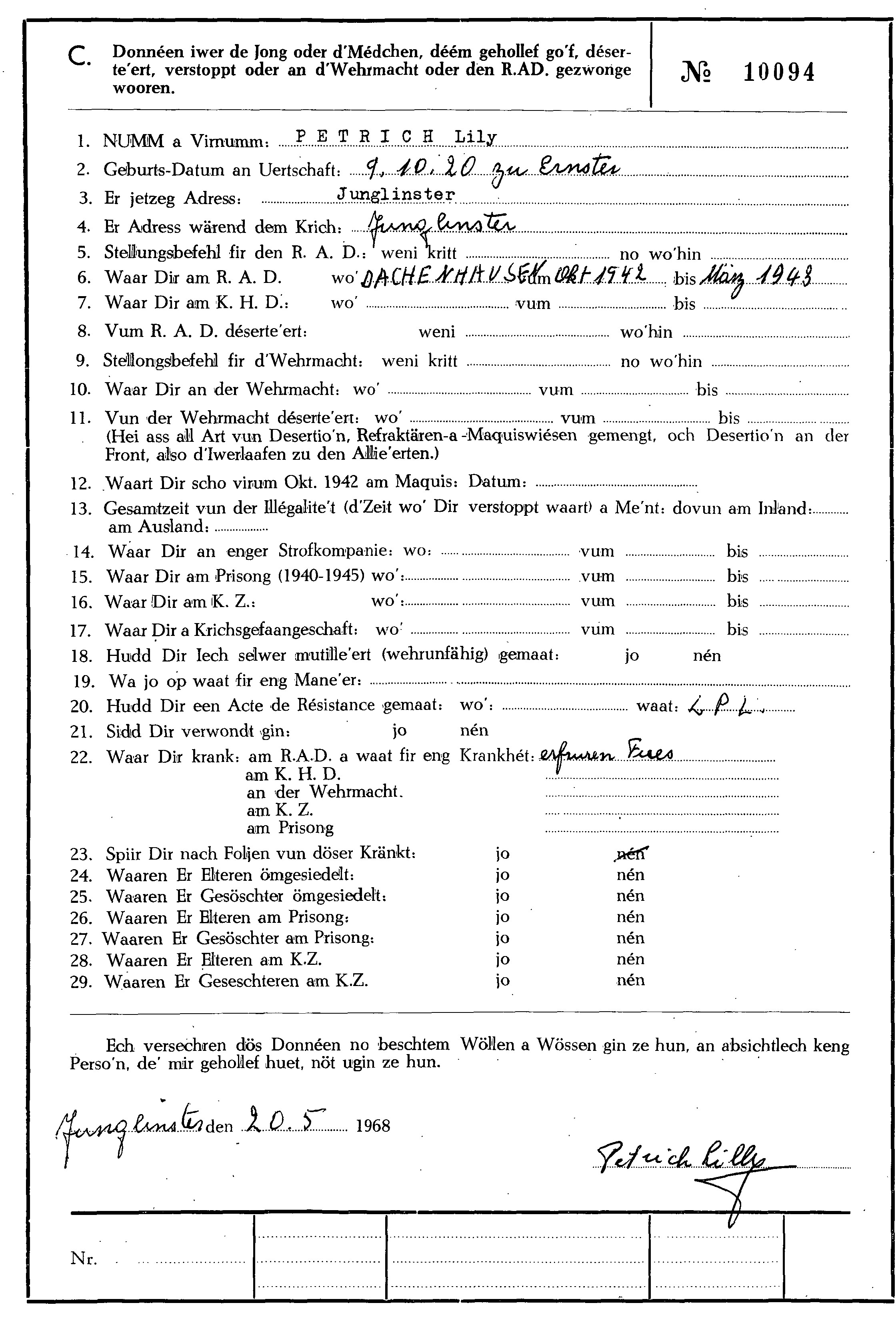 MRN 1.jpg Télécharger le document 2.jpg Télécharger le document 3.jpg Télécharger le document Petrich_Maria_Lily_09101920_Ernster_Fonds_WEIRICH_Jos_HOLLERICH_2018_Box_20 Petrich_Maria_Lily_09101920_Ernster_Fonds_WEIRICH_Jos_HOLLERICH_2018_Box_20.pdf Télécharger le document
