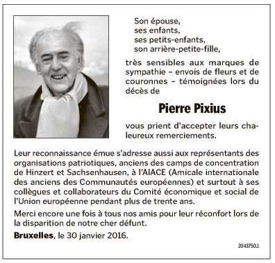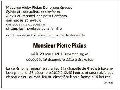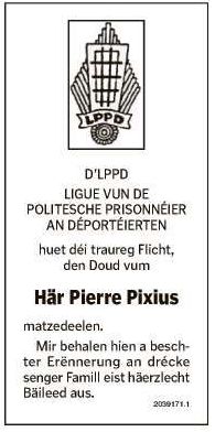 Pierre_Pixius Pixius_Pierre_28051921_Luxembourg_19122015_Bruxelles.jpg Télécharger le document Pixius_Pierre_Hinzert_Sachsenhausen_LW_30012016.jpg Télécharger le document Pixius_Pierre.jpg Télécharger le document