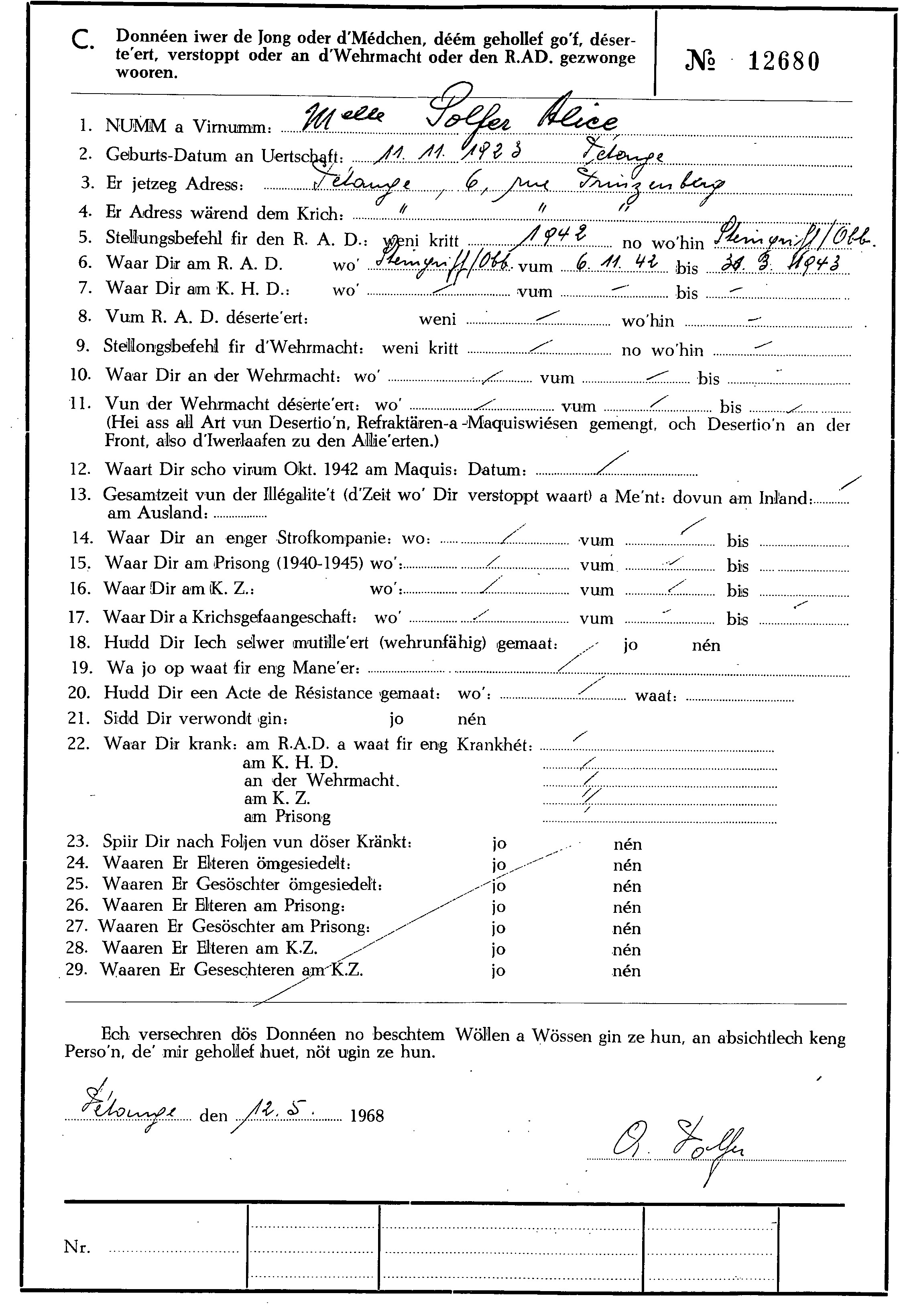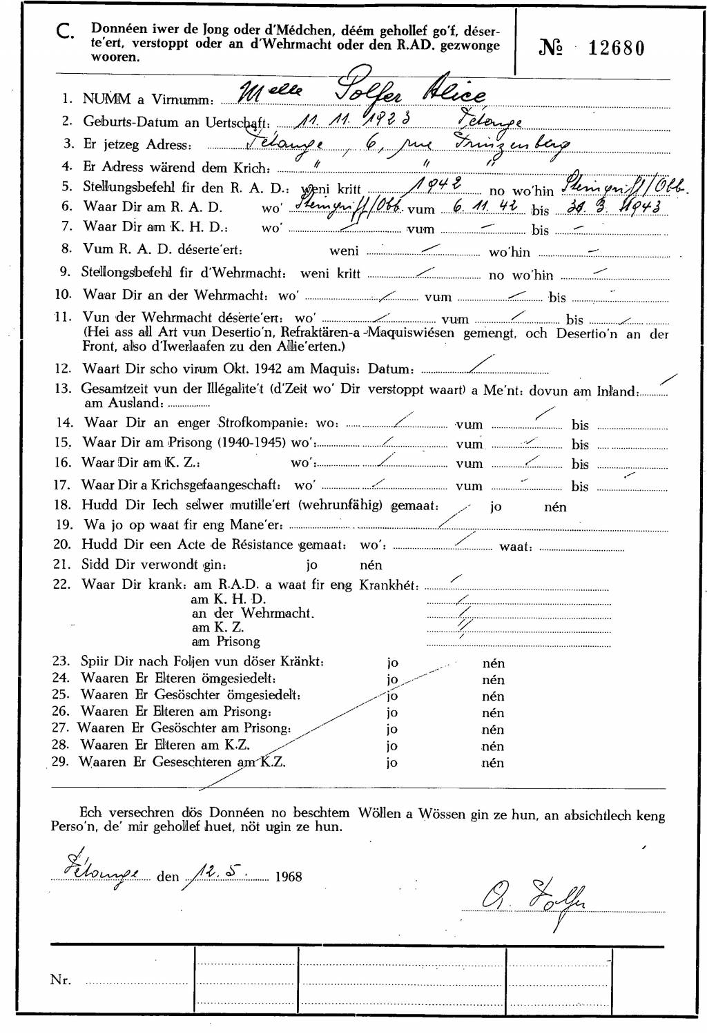 Nom, prénom, nom pendant l'occupation