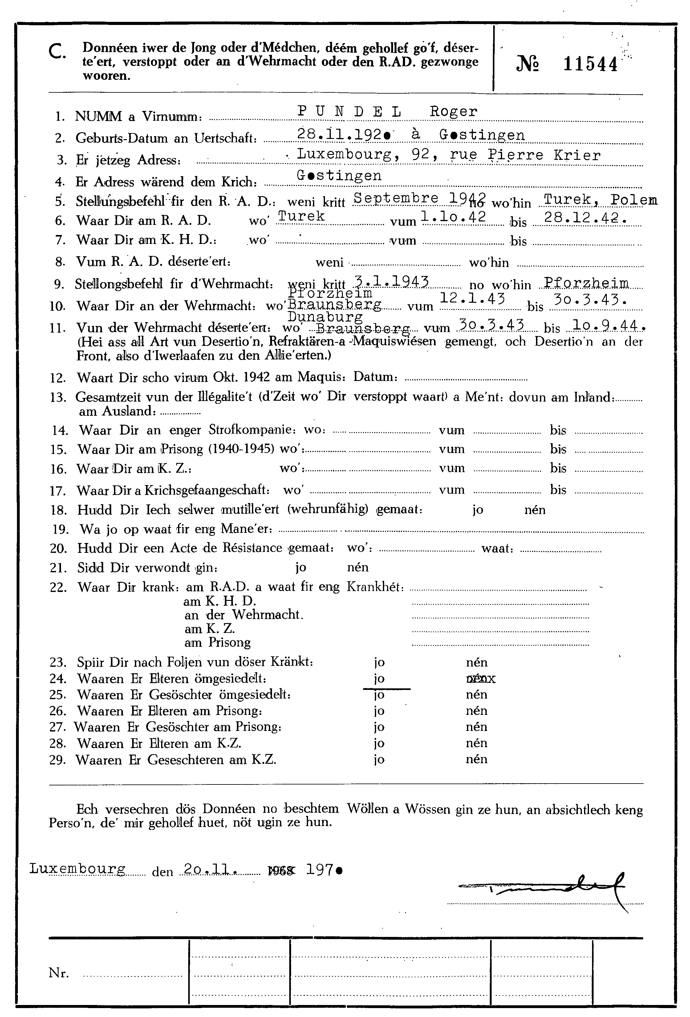 Nom, prénom, nom pendant l'occupation