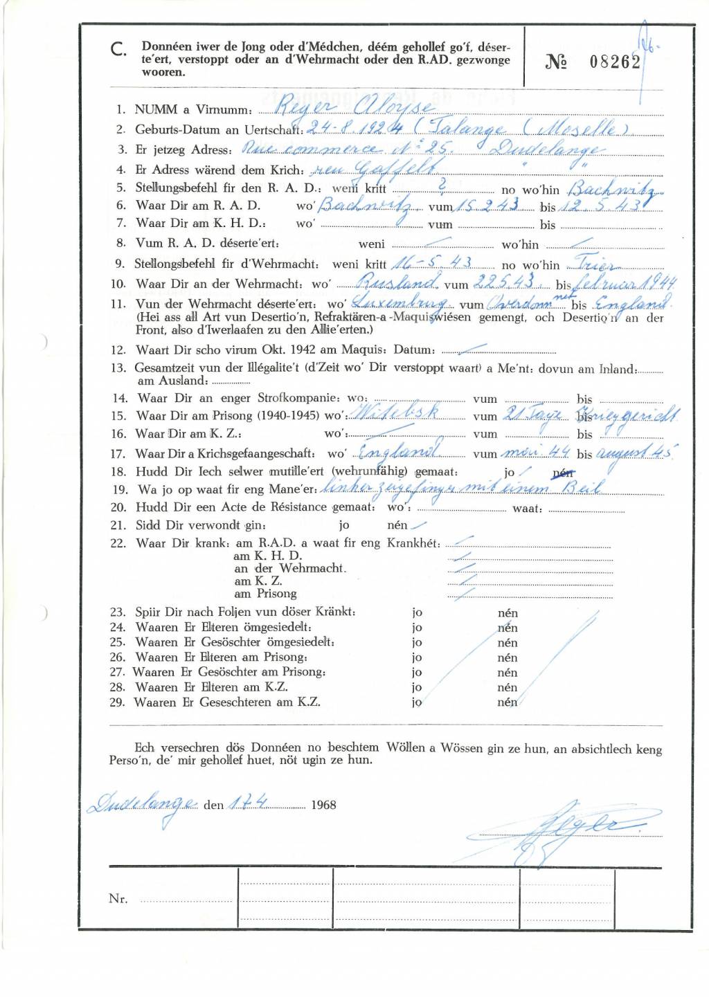Nom, prénom, nom pendant l'occupation
