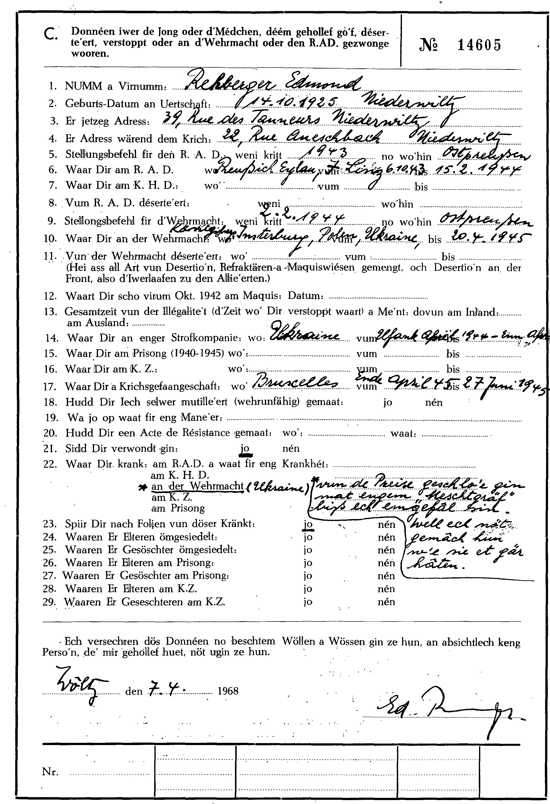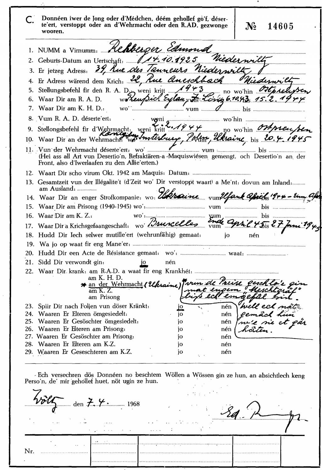 Nom, prénom, nom pendant l'occupation