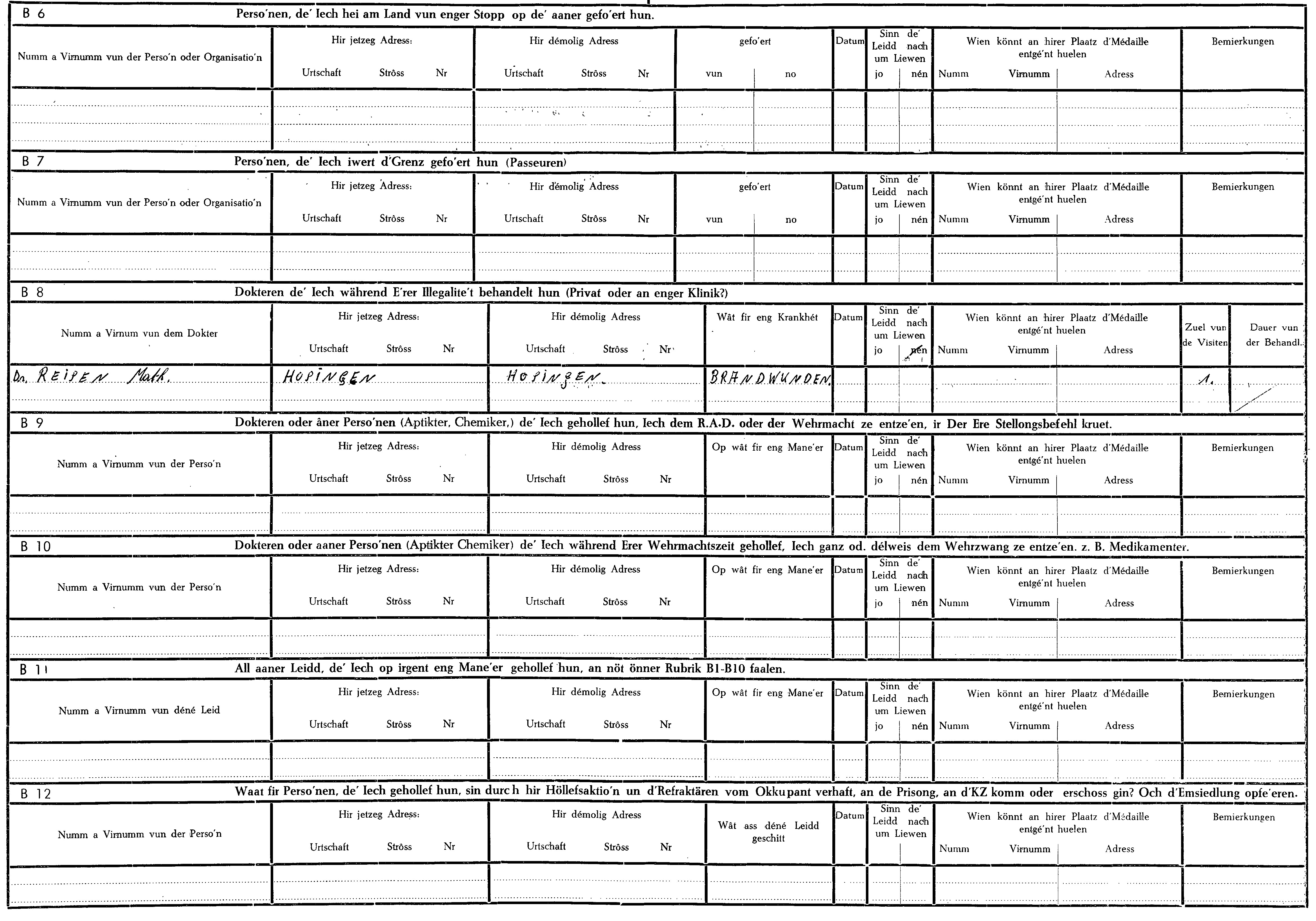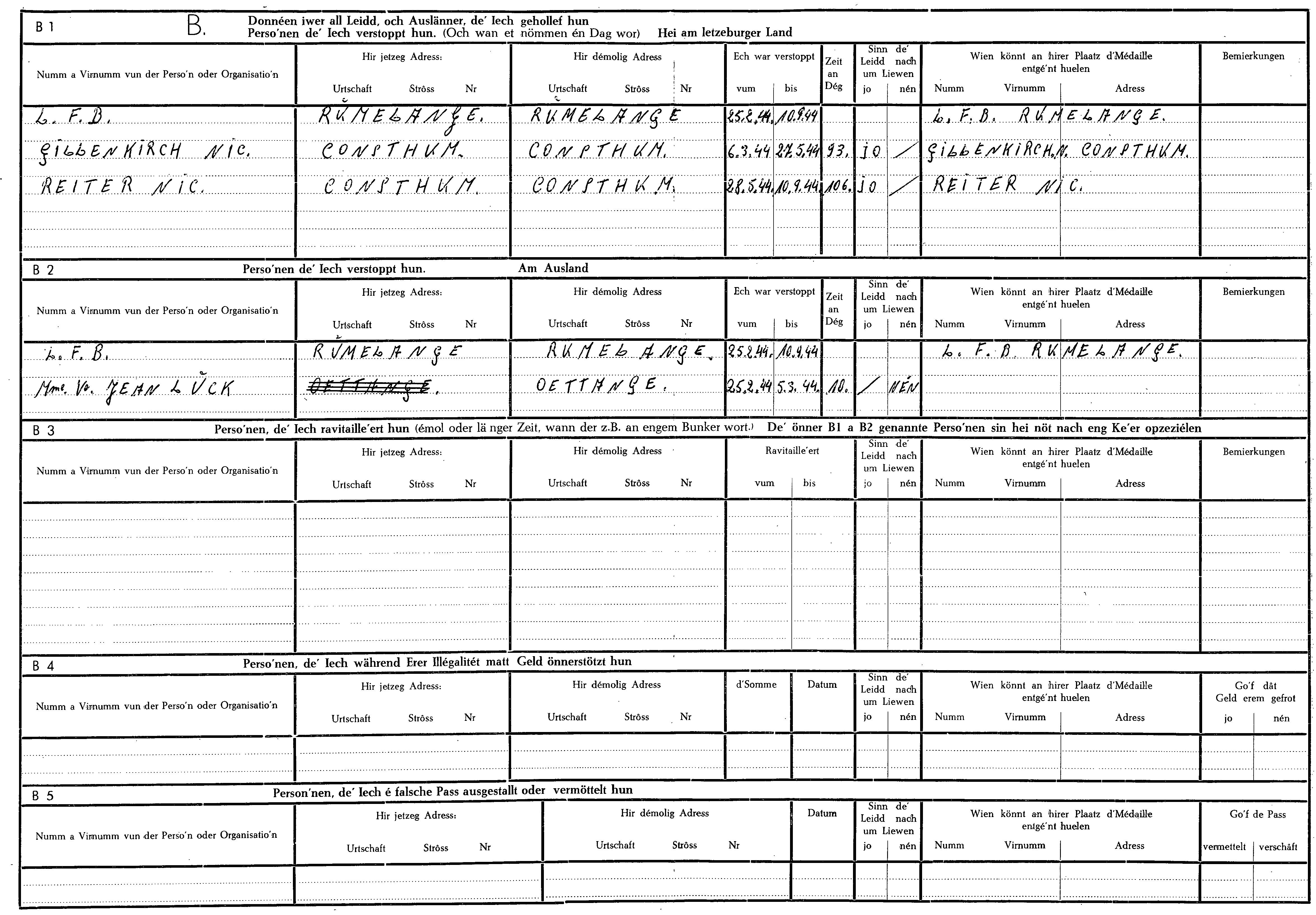 Nom, prénom, nom pendant l'occupation