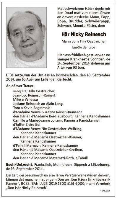 REINESCH Nicolas 13031921 Esch sur Alzette 1.jpg Télécharger le document 2.jpg Télécharger le document 3.jpg Télécharger le document Reinesch_Nicolas_Nicky_13031921_EschAlzette_18092014.jpg Télécharger le document
