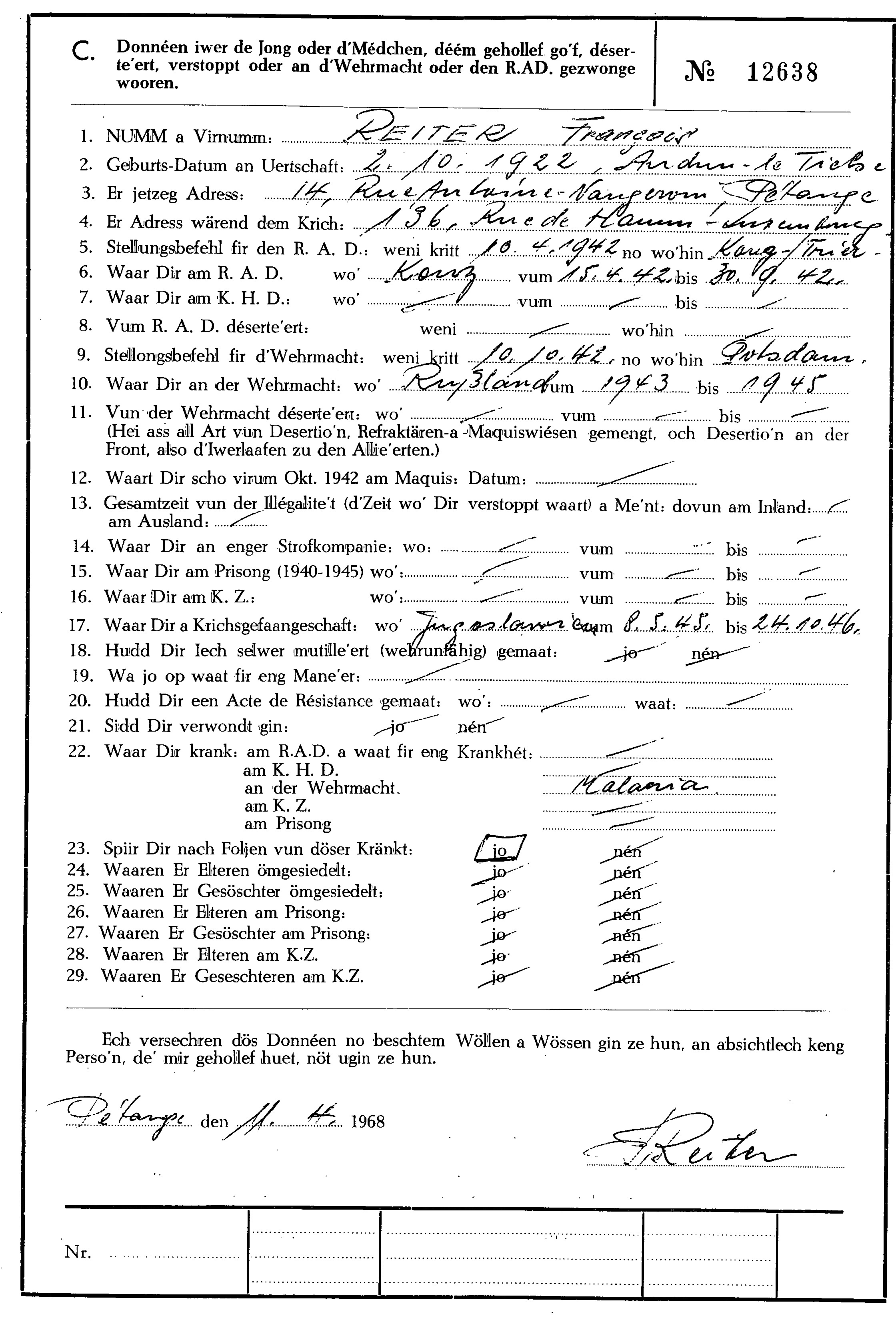 Nom, prénom, nom pendant l'occupation