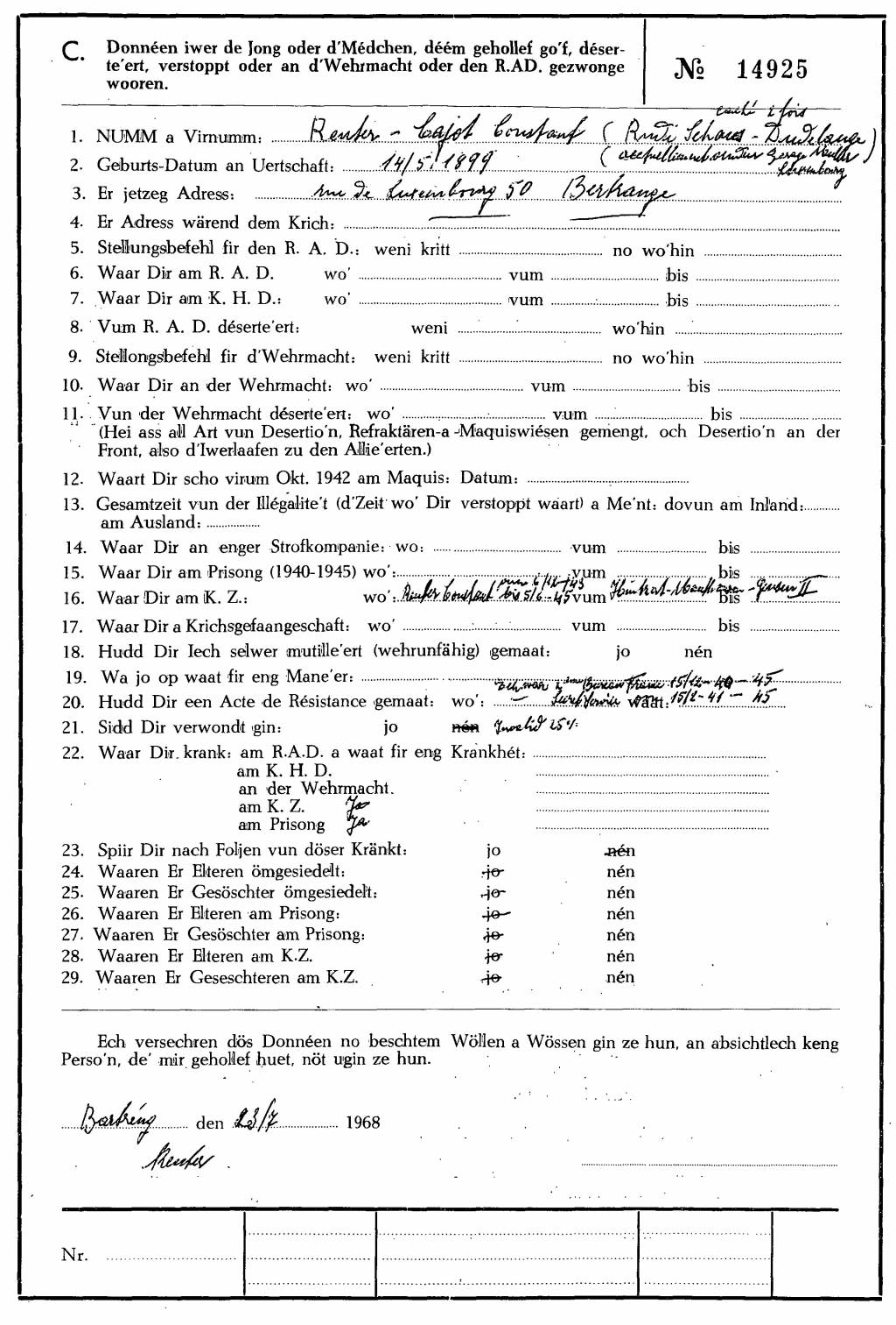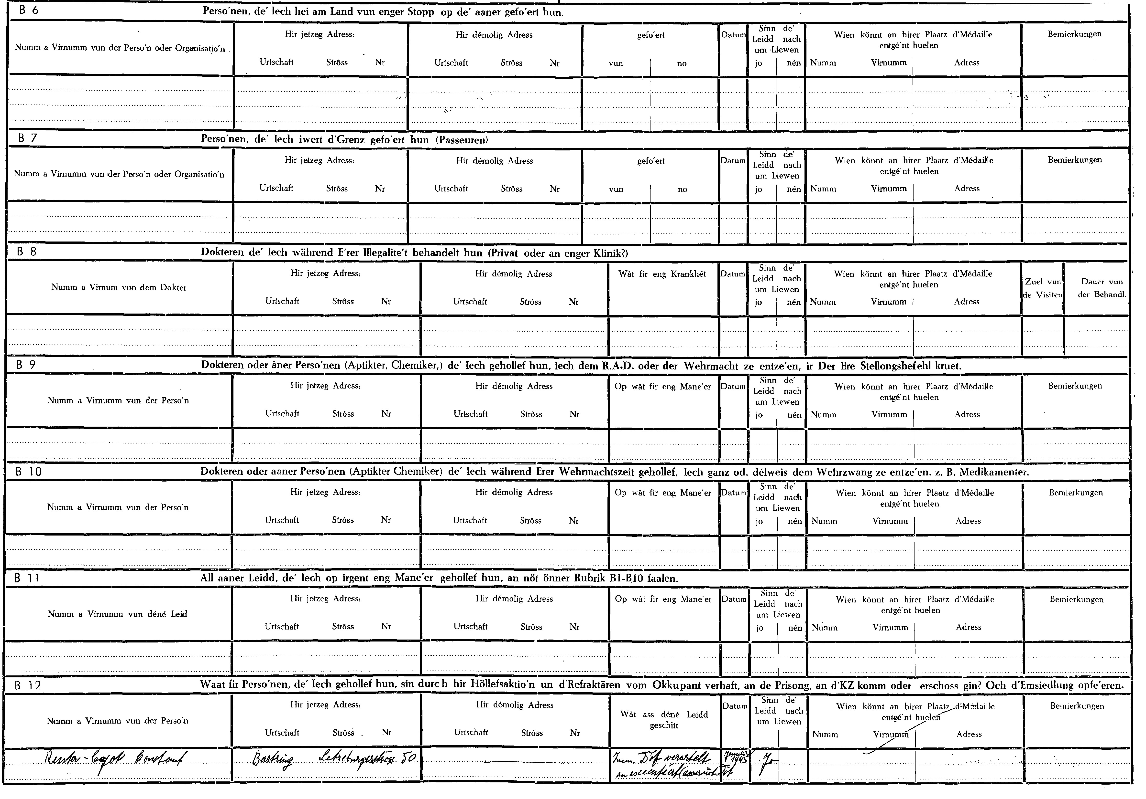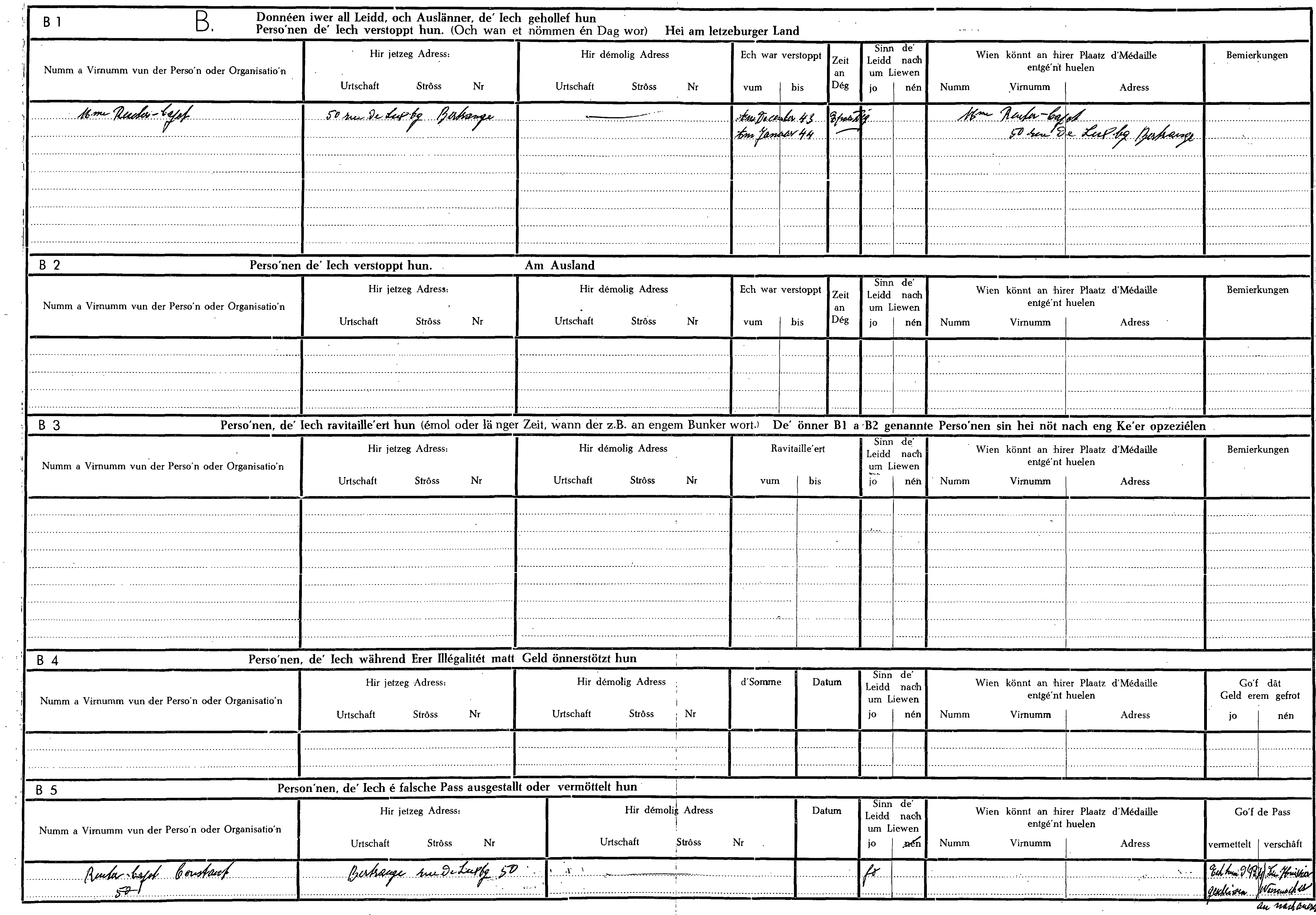 Nom, prénom, nom pendant l'occupation