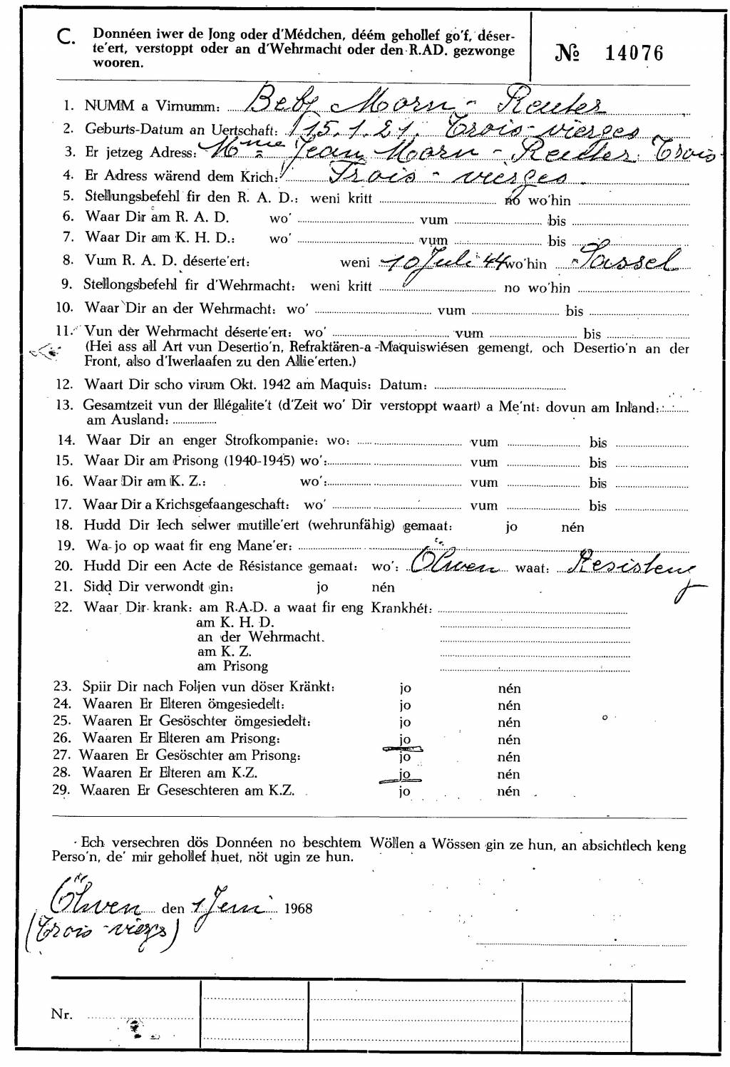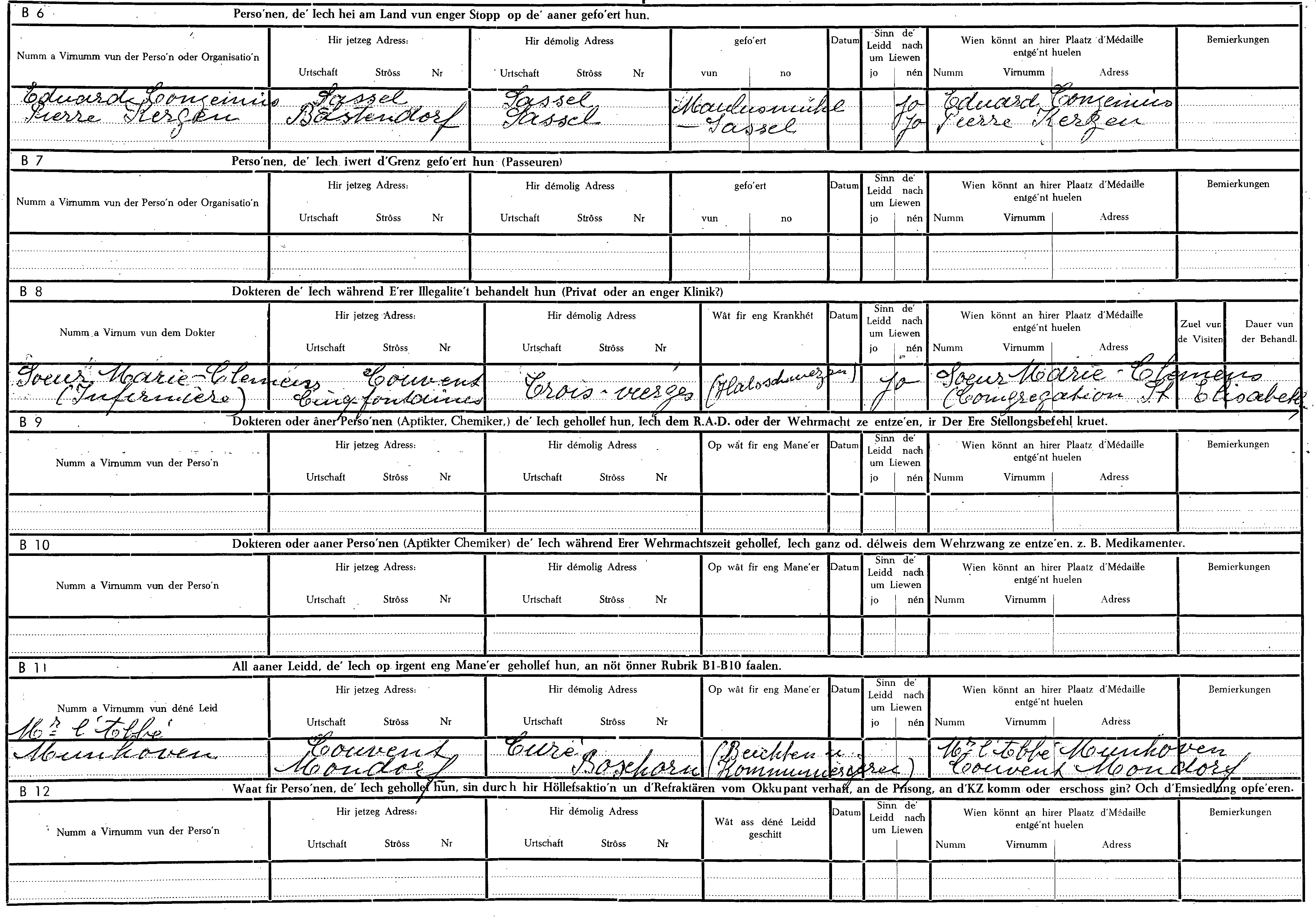 Nom, prénom, nom pendant l'occupation