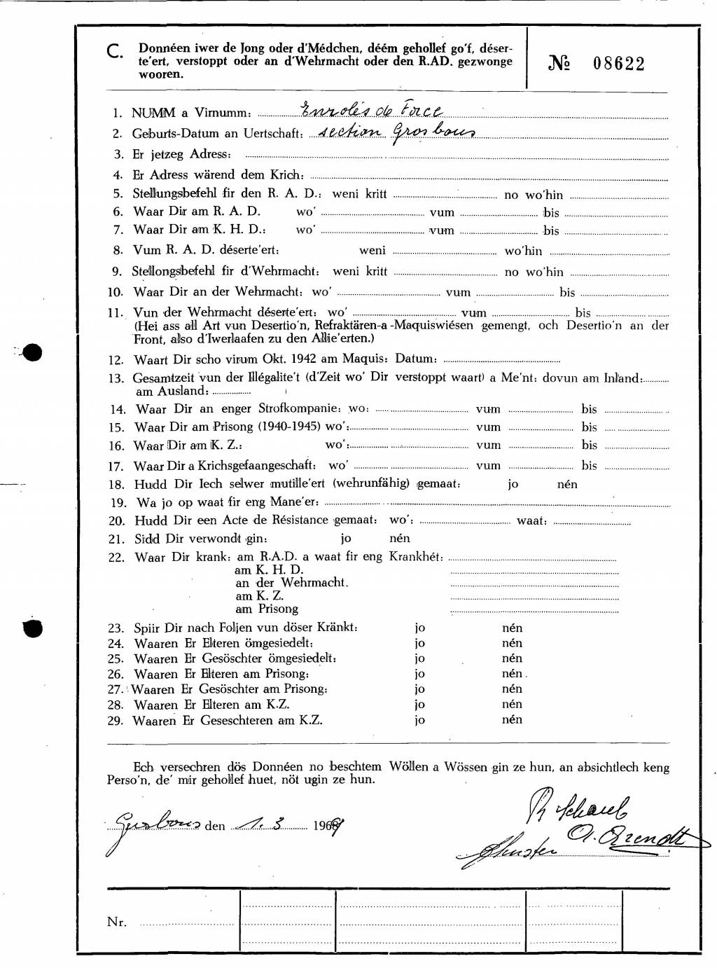 Nom, prénom, nom pendant l'occupation