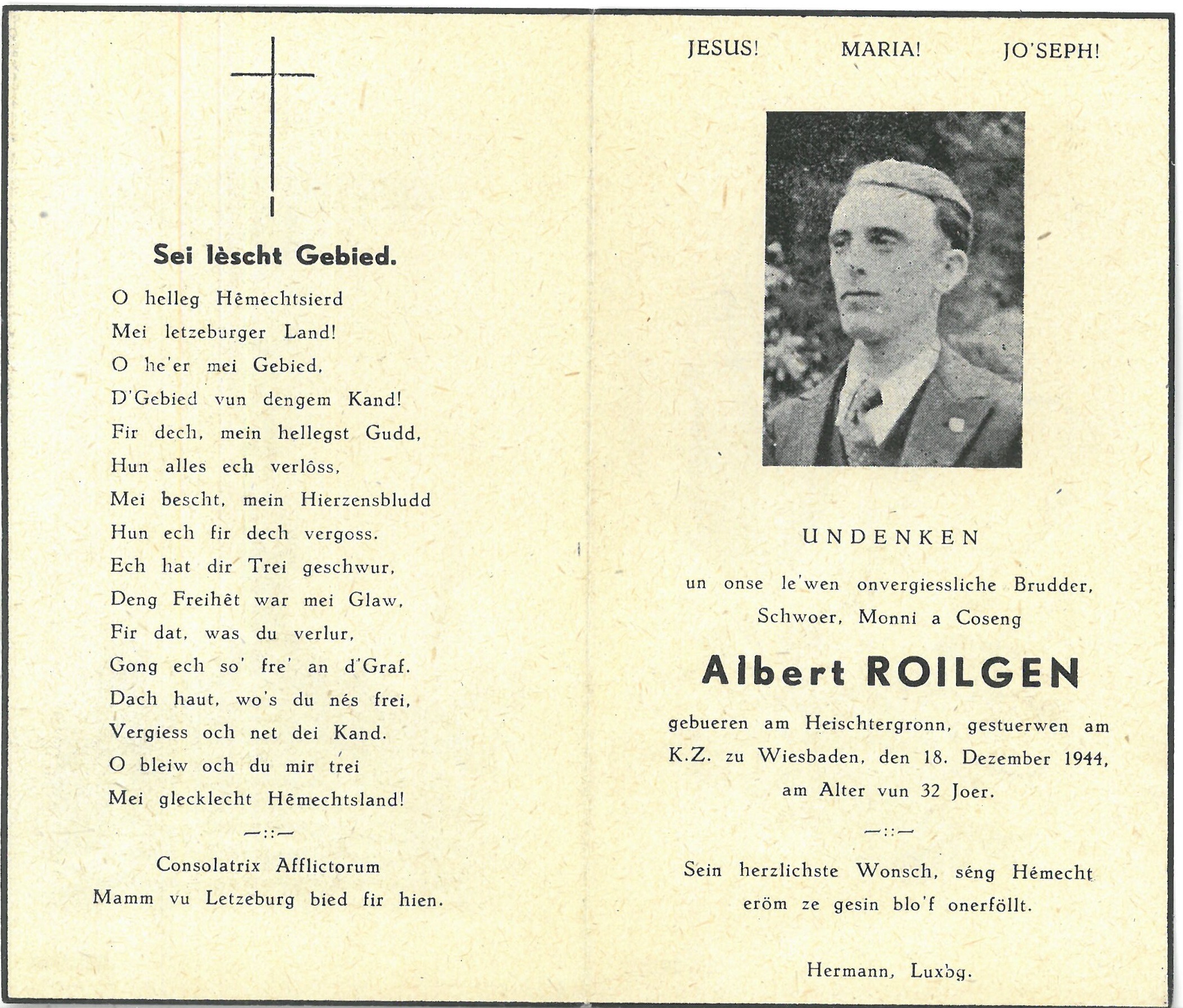 Divers_Roilgen_Albert LPPD Livre Or des Camps.jpg Télécharger le document Morts Allemagne rapatrié1.pdf Télécharger le document Roilgen Albert.JPG Télécharger le document Roilgen_Albert_Heiderscheid_Grund_18121944_Wiesbaden_Fonds_Thill_Claude_Bereldange_mars_2018.jpg Télécharger le document