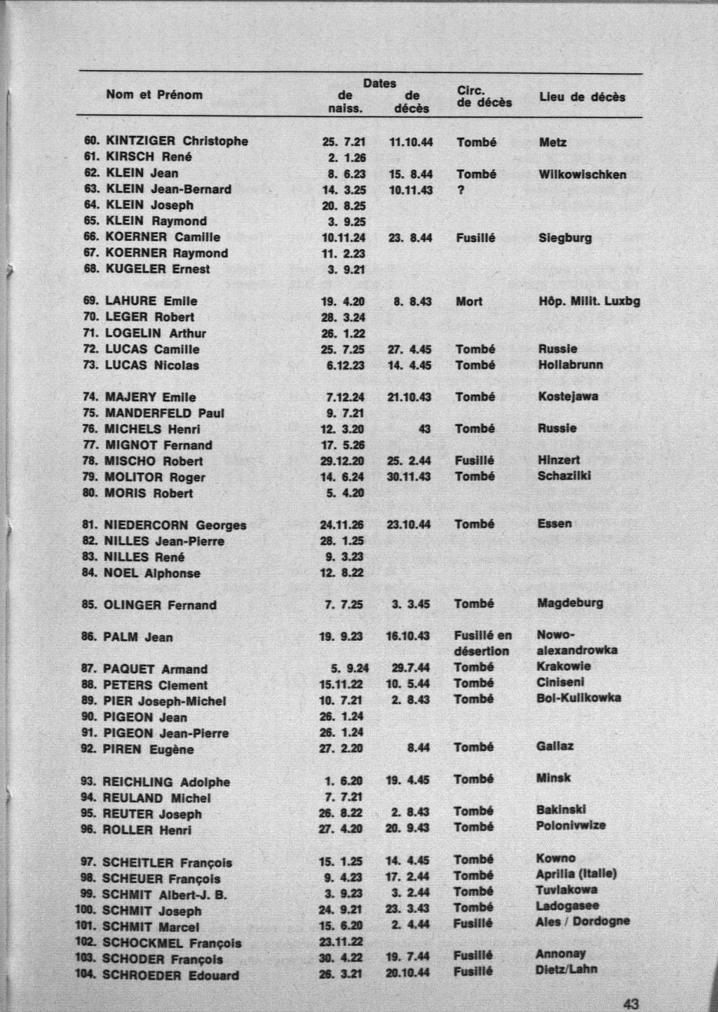 Nom, prénom, nom pendant l'occupation