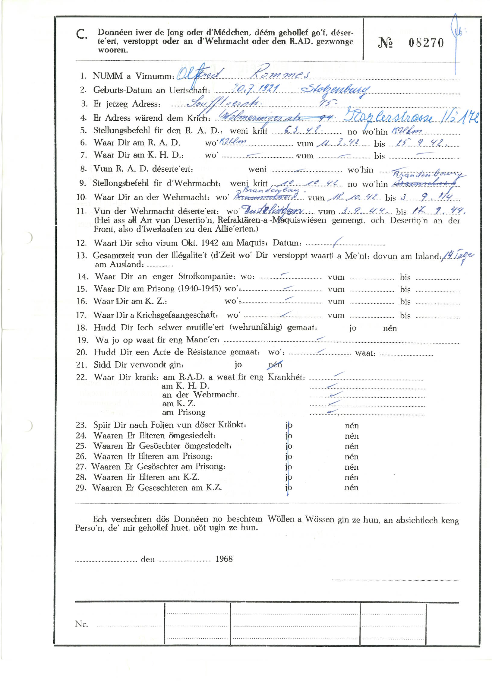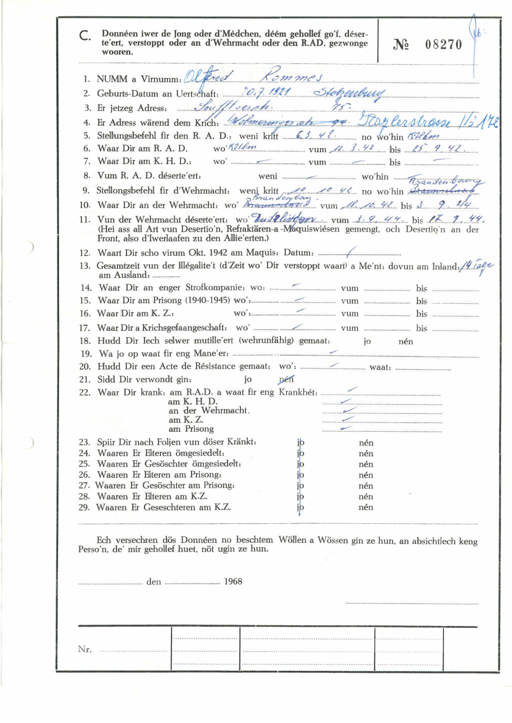 Nom, prénom, nom pendant l'occupation