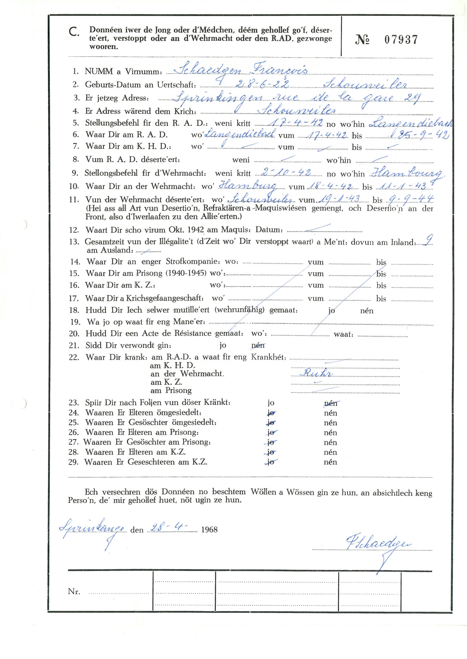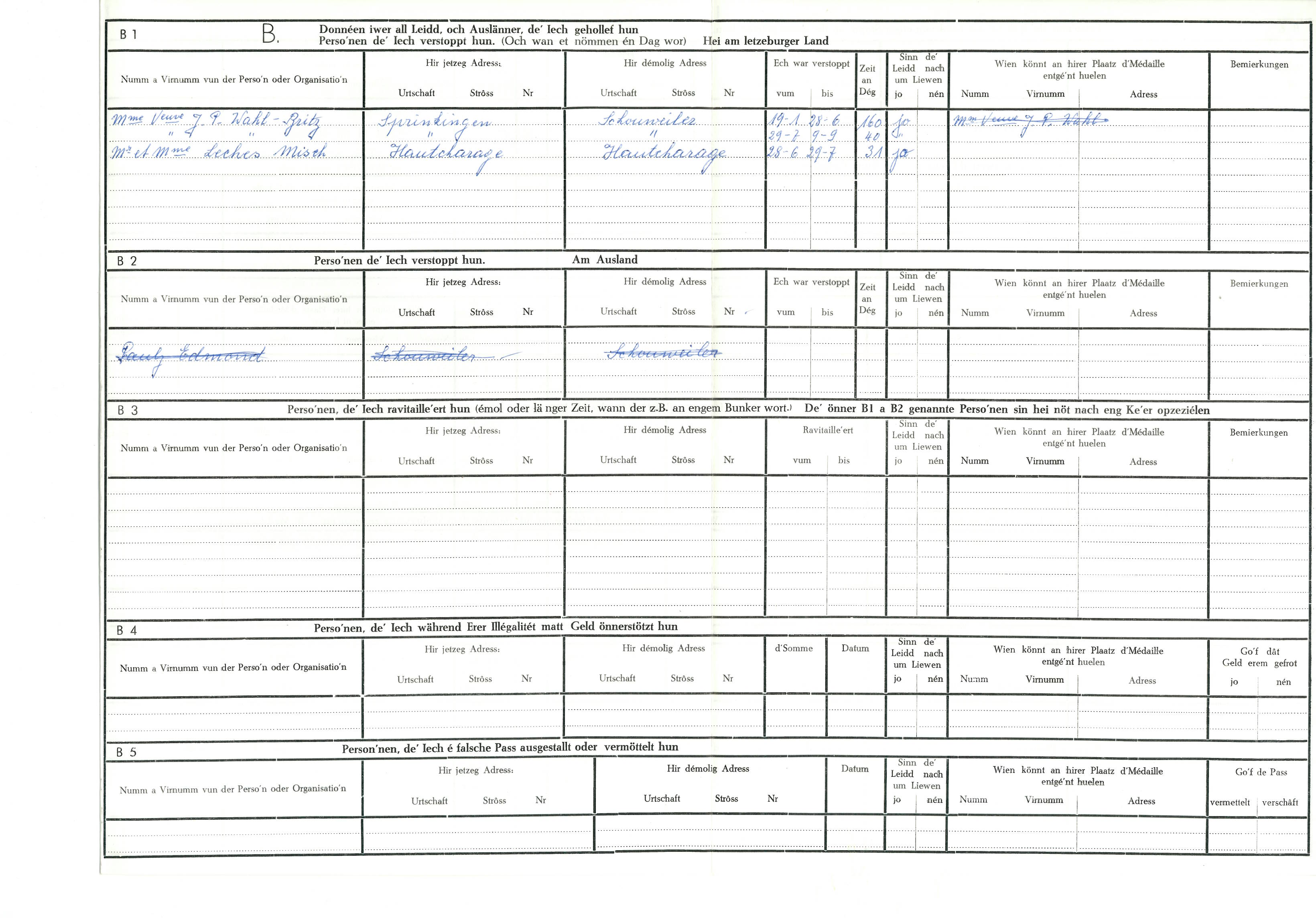 Nom, prénom, nom pendant l'occupation
