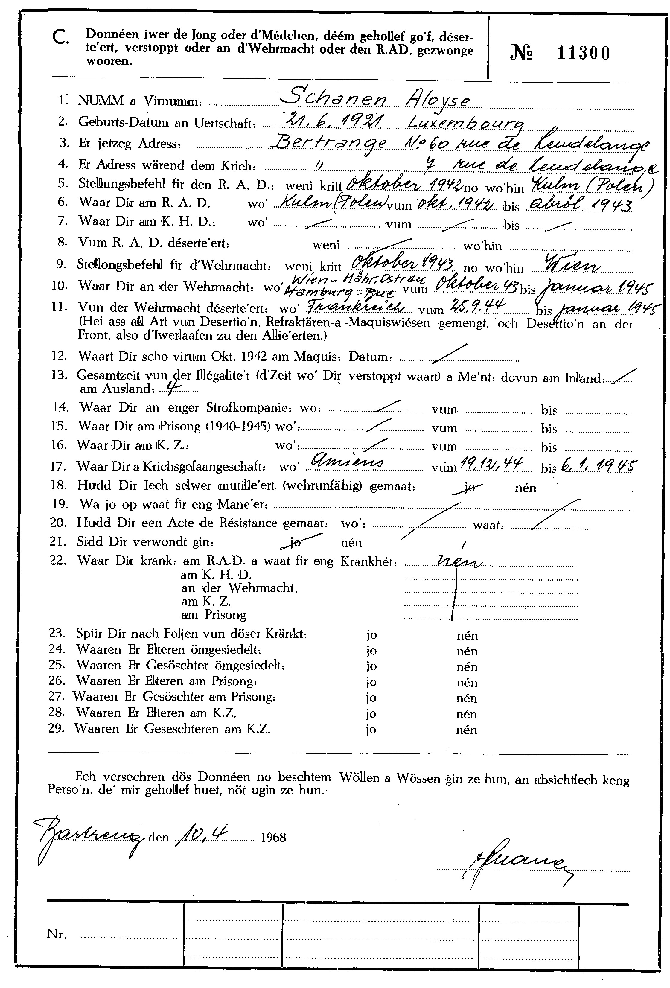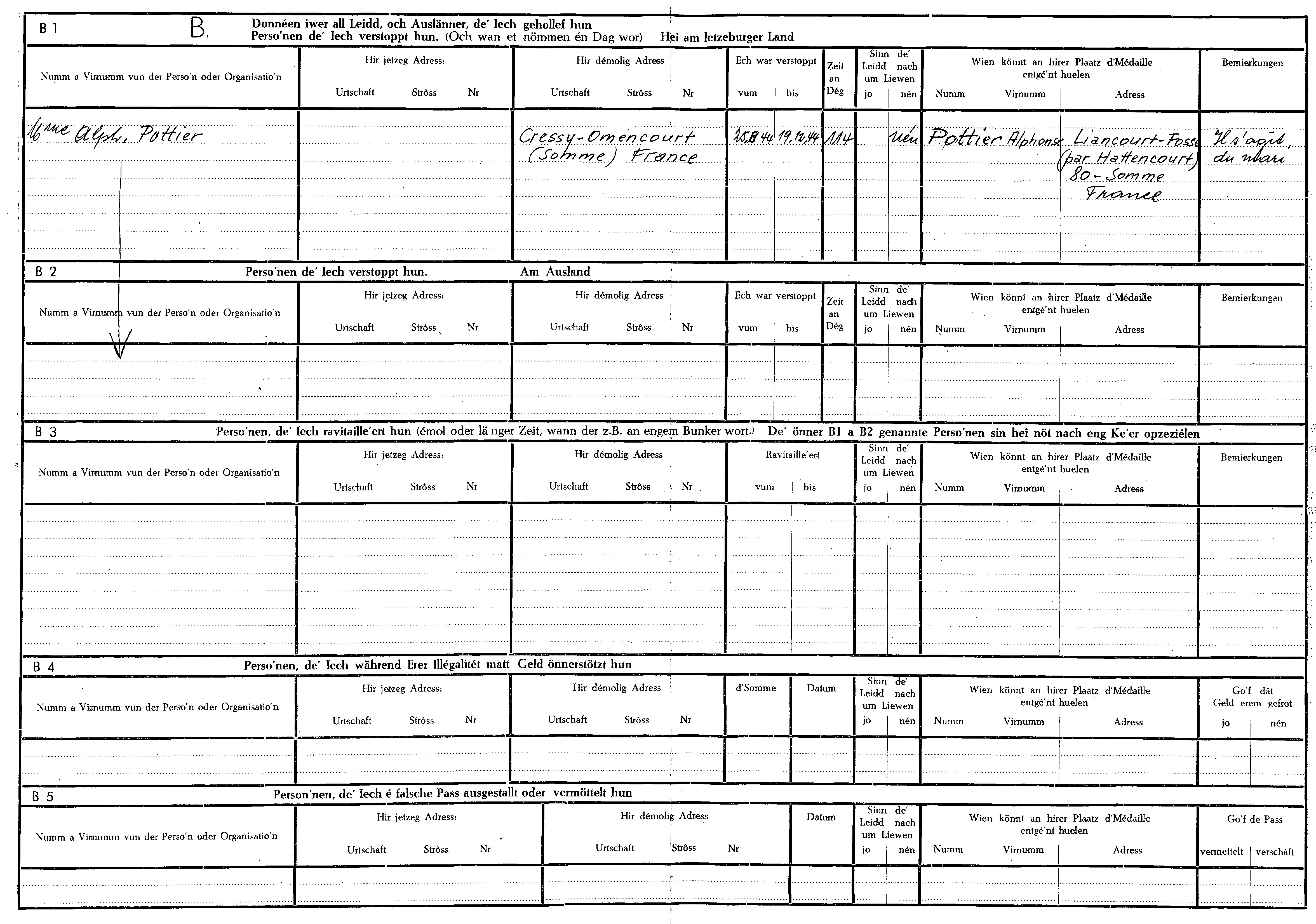 Nom, prénom, nom pendant l'occupation