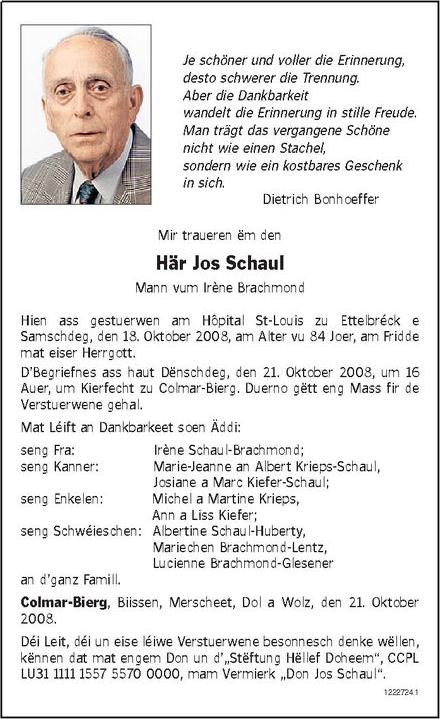 Schaul Joseph 20071924 1.jpg Télécharger le document 2.jpg Télécharger le document 3.jpg Télécharger le document Schaul Jos.jpg Télécharger le document