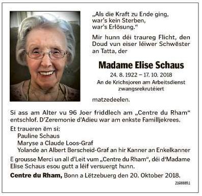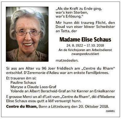MRN 1.jpg Télécharger le document 2.jpg Télécharger le document 3.jpg Télécharger le document RIP_Elise_Schaus Schaus_Elise_24081922_170102018_Lw_20102018.jpg Télécharger le document