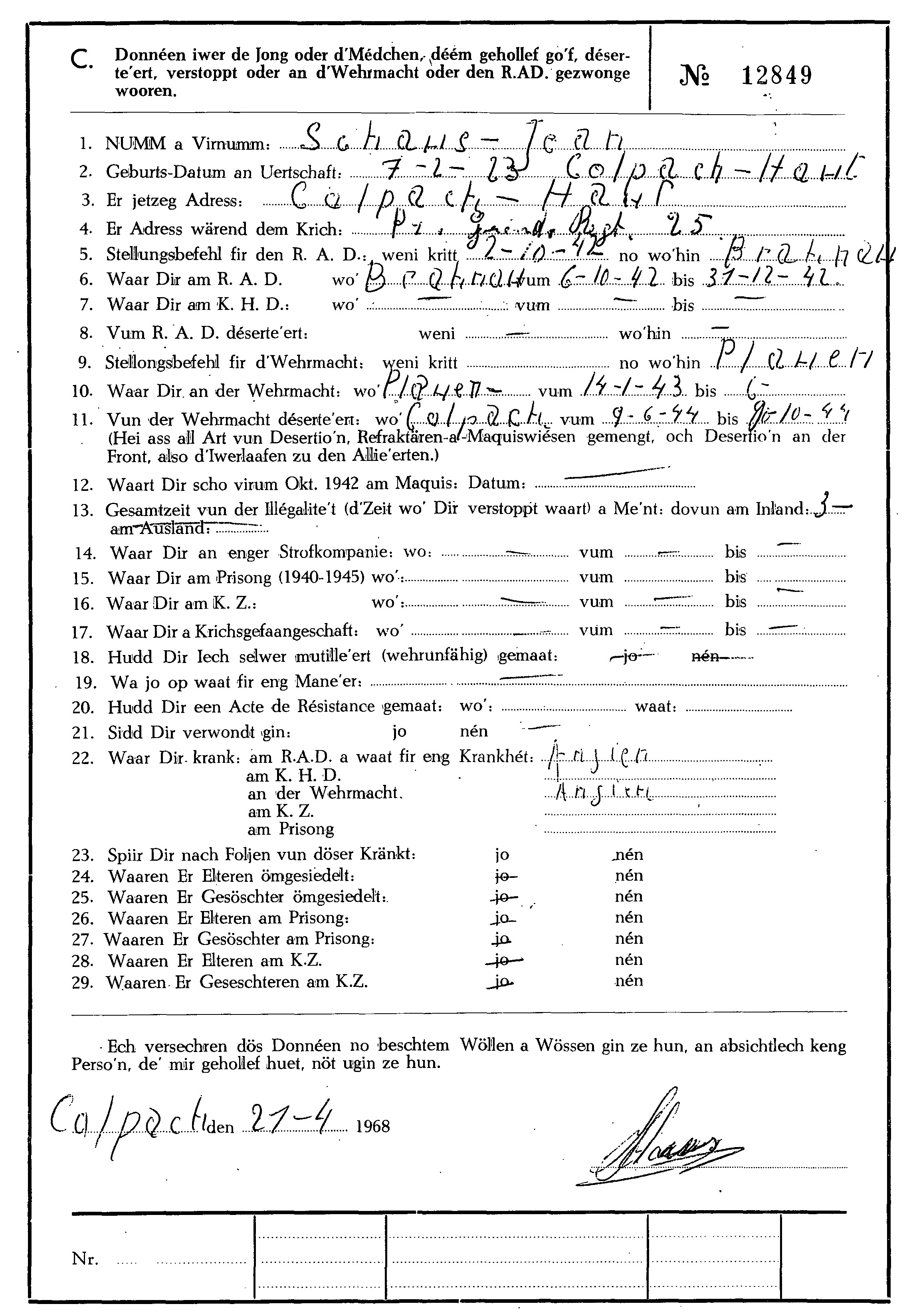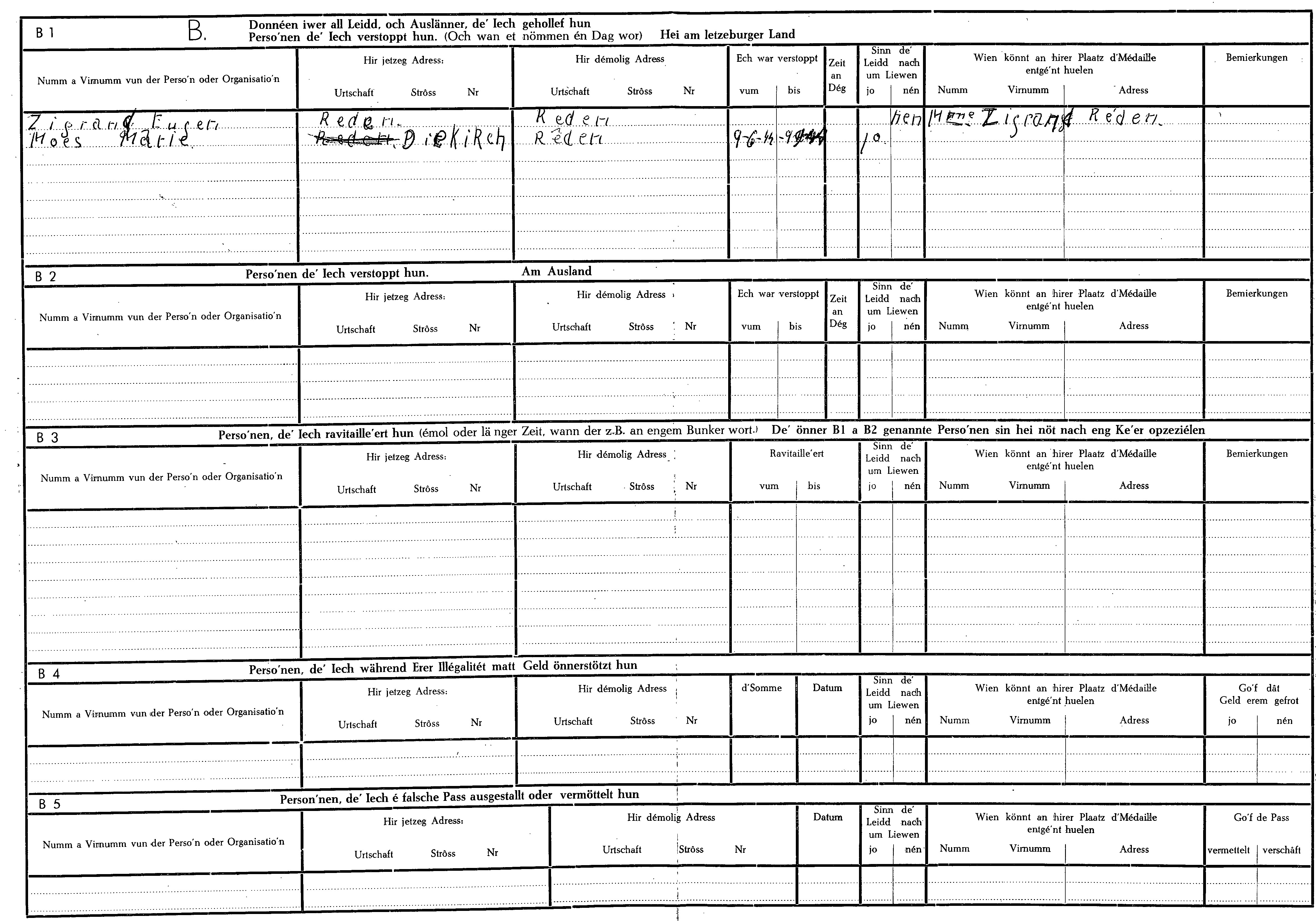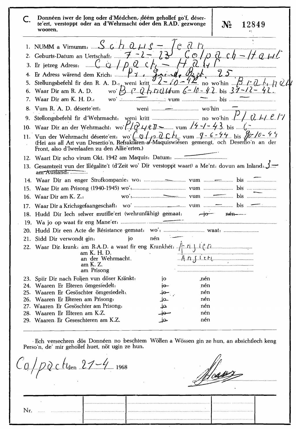 Nom, prénom, nom pendant l'occupation