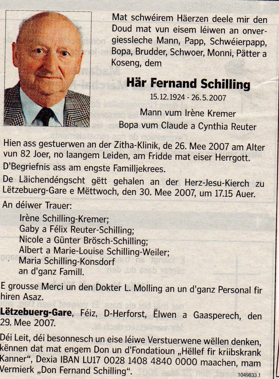 Divers Schilling Fernand 15021924 Lellingen Wilwerwiltz KERGEN Kriegserinnerungen eines Oslinger Resistenzler.JPG Télécharger le document LW img483.jpg Télécharger le document img484_2_2_2.jpg Télécharger le document