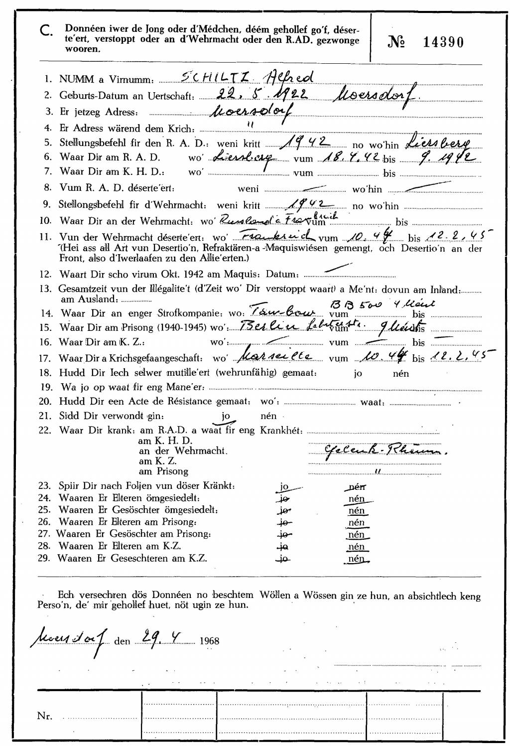 Divers Schiltz Alfred ev Moersdorf Musterung 05101942 in Grevenmacher KOHN Yolande.jpg Télécharger le document MRN 1.jpg Télécharger le document 2.jpg Télécharger le document 3.jpg Télécharger le document