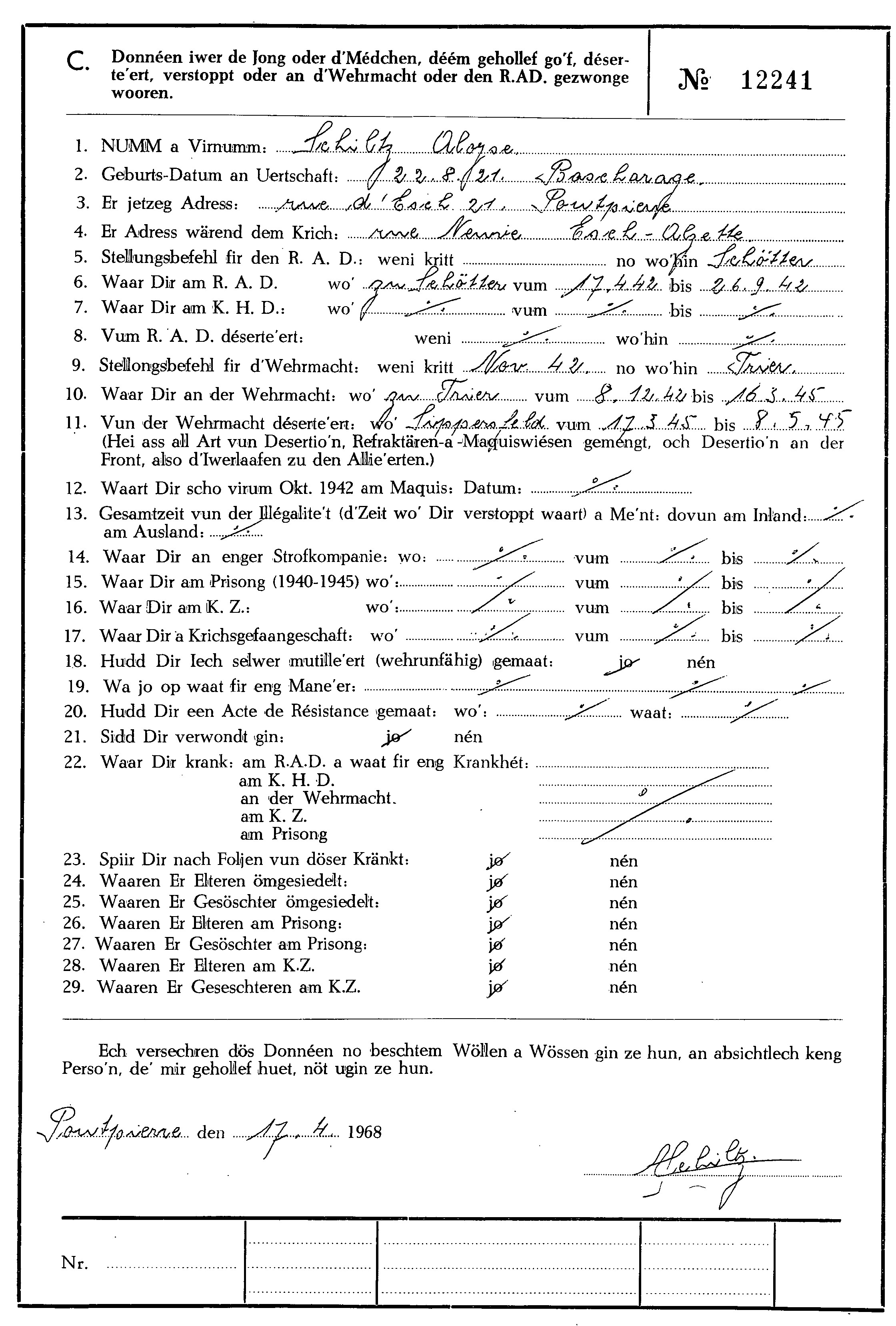 MRN 1.jpg Télécharger le document 2.jpg Télécharger le document 3.jpg Télécharger le document Schiltz_Aloyse_22081921_Bascharage_12012010_Luxembourg_Extrait_Livre_TROSSEN_Marc_Verluere_Joeren_Band_III_2018_p_159 Kopie Schiltz_Aloyse_22081921_Bascharage_12012010_Luxembourg_Extrait_Livre_TROSSEN_Marc_Verluere_Joeren_Band_III_2018_p_159 Kopie.JPG Télécharger le document