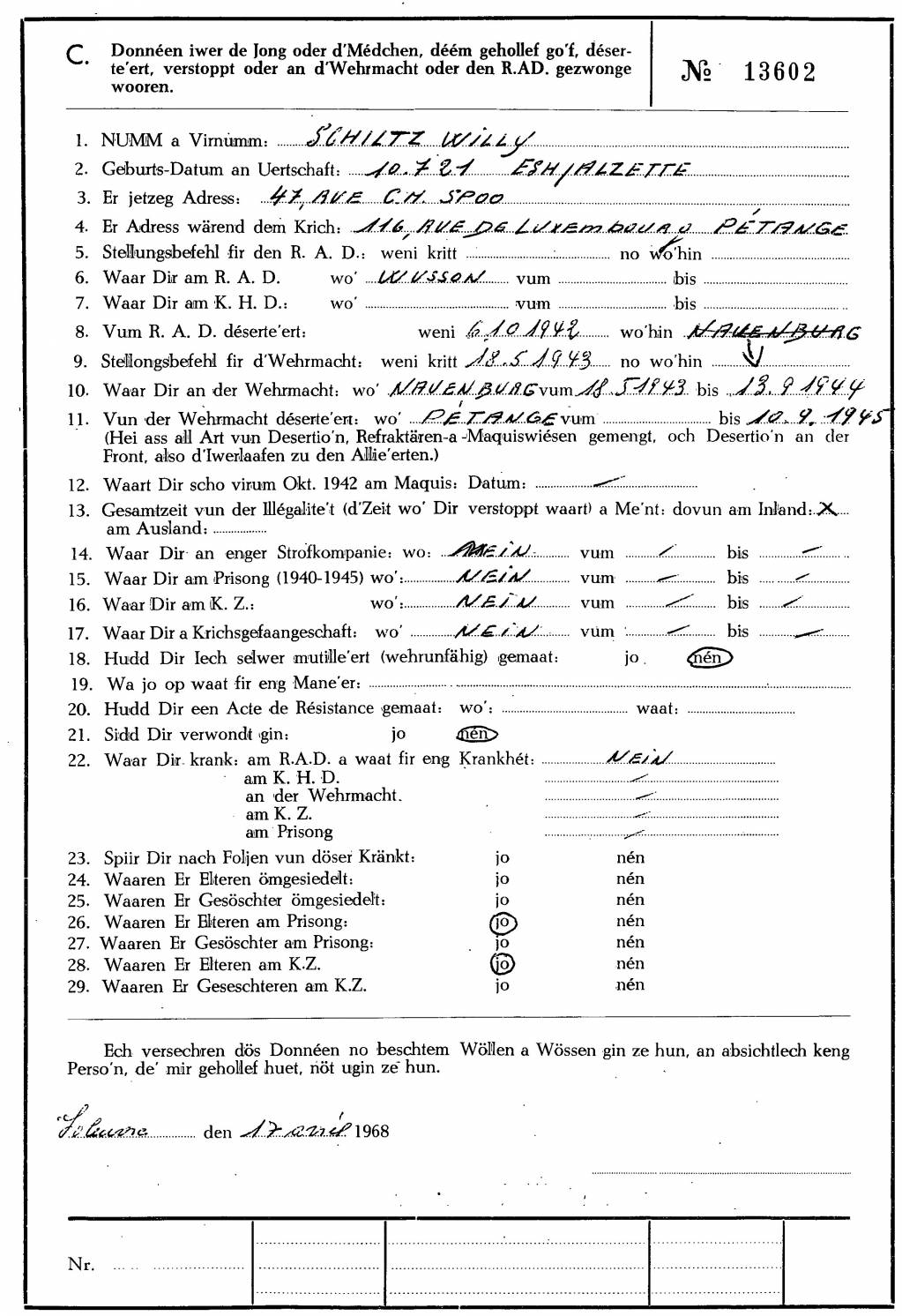 Divers Schiltz Wilhelm 10071921 Esch Alzette 03022006.pdf Télécharger le document MRN 1.jpg Télécharger le document 2.jpg Télécharger le document 3.jpg Télécharger le document