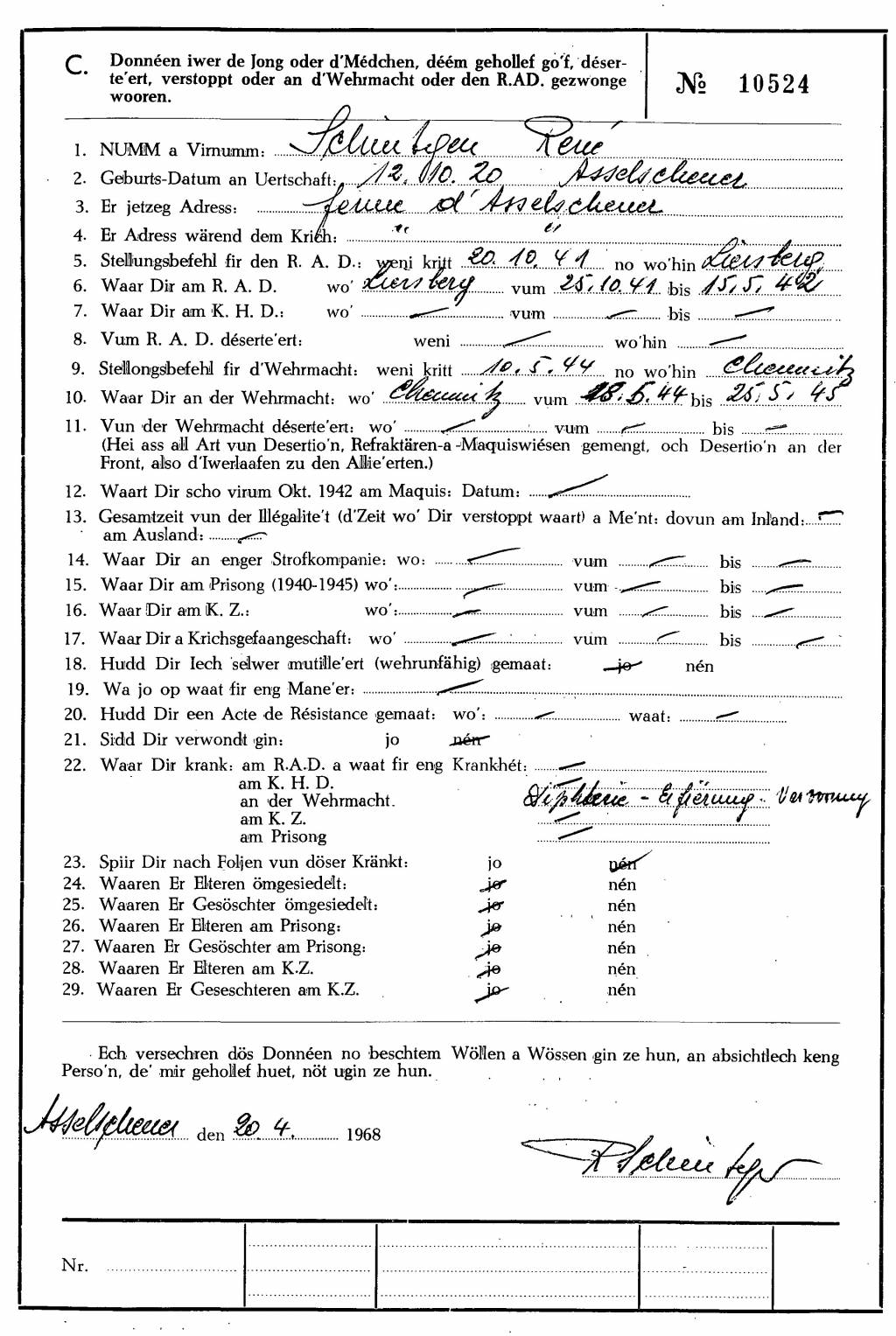 Nom, prénom, nom pendant l'occupation