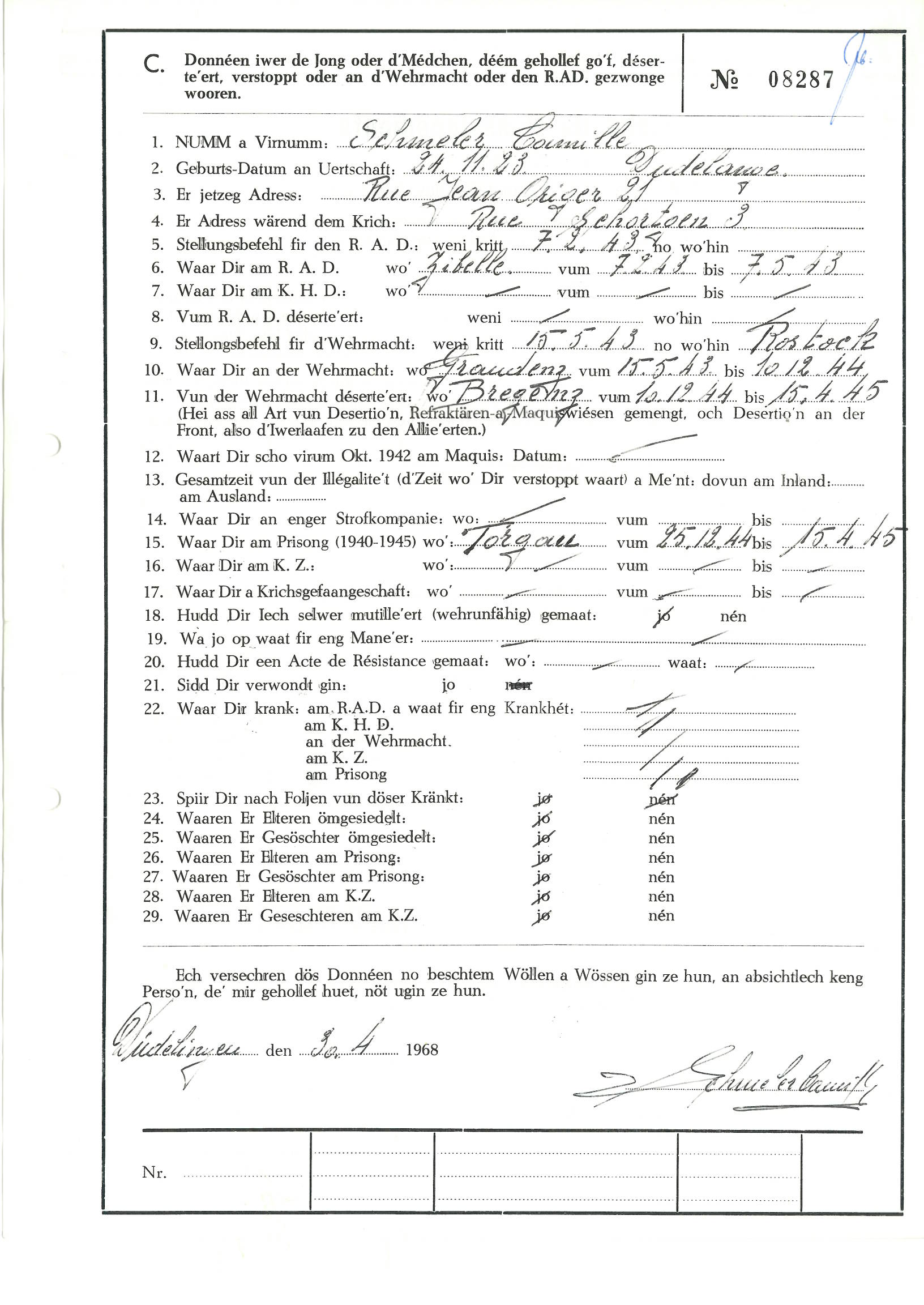 Nom, prénom, nom pendant l'occupation
