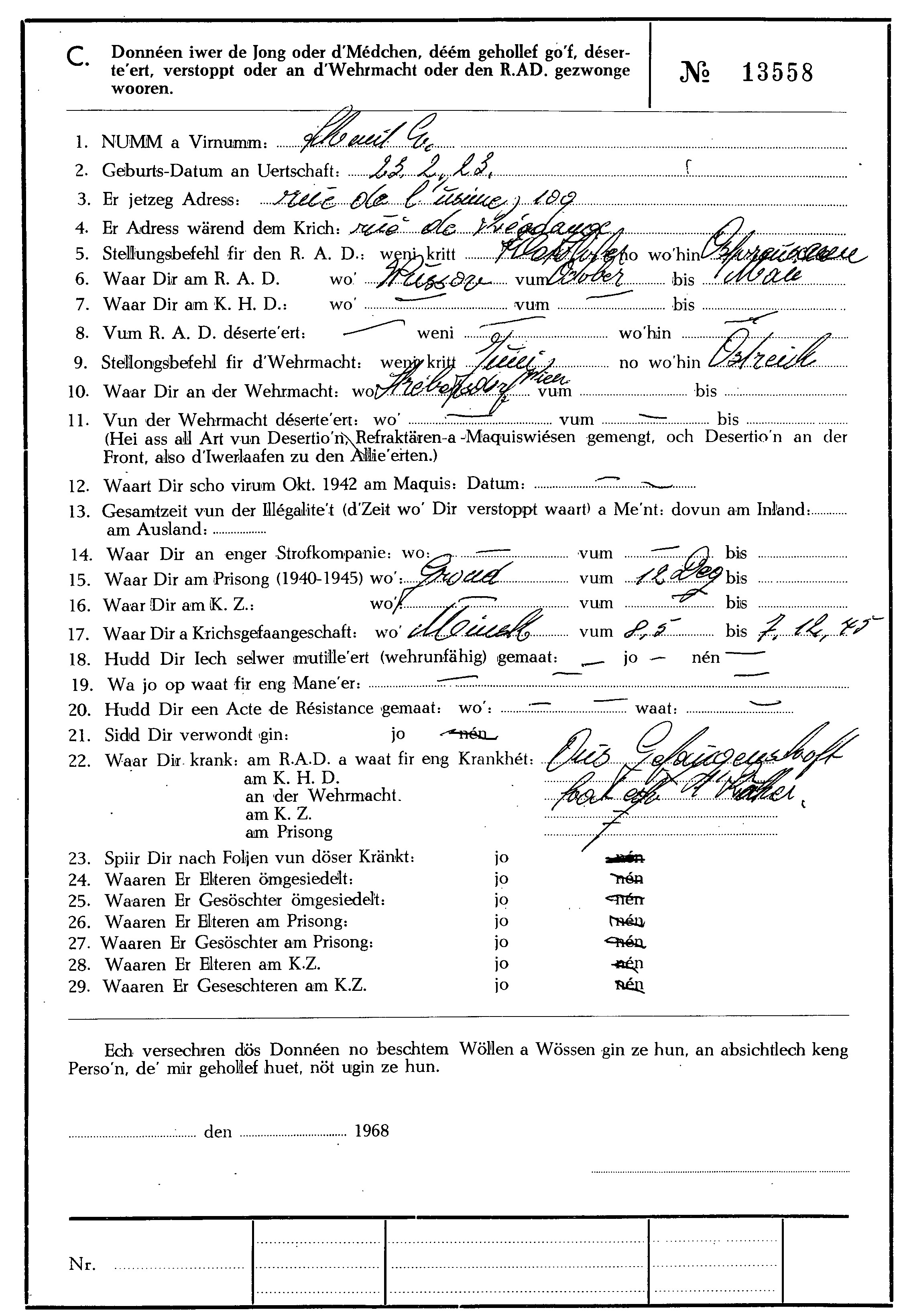 Nom, prénom, nom pendant l'occupation