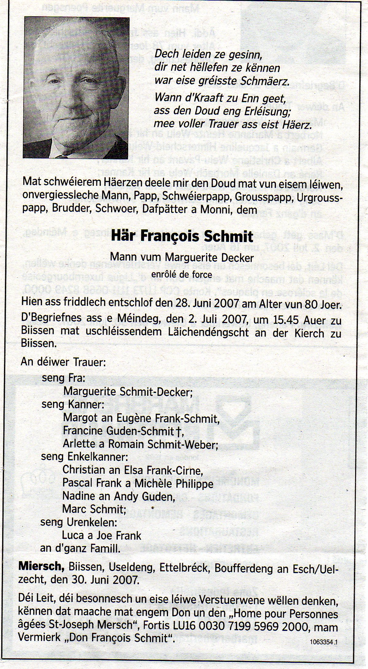 Date de naissance, date de décès, date de disparition (jj/mm/aaaa)