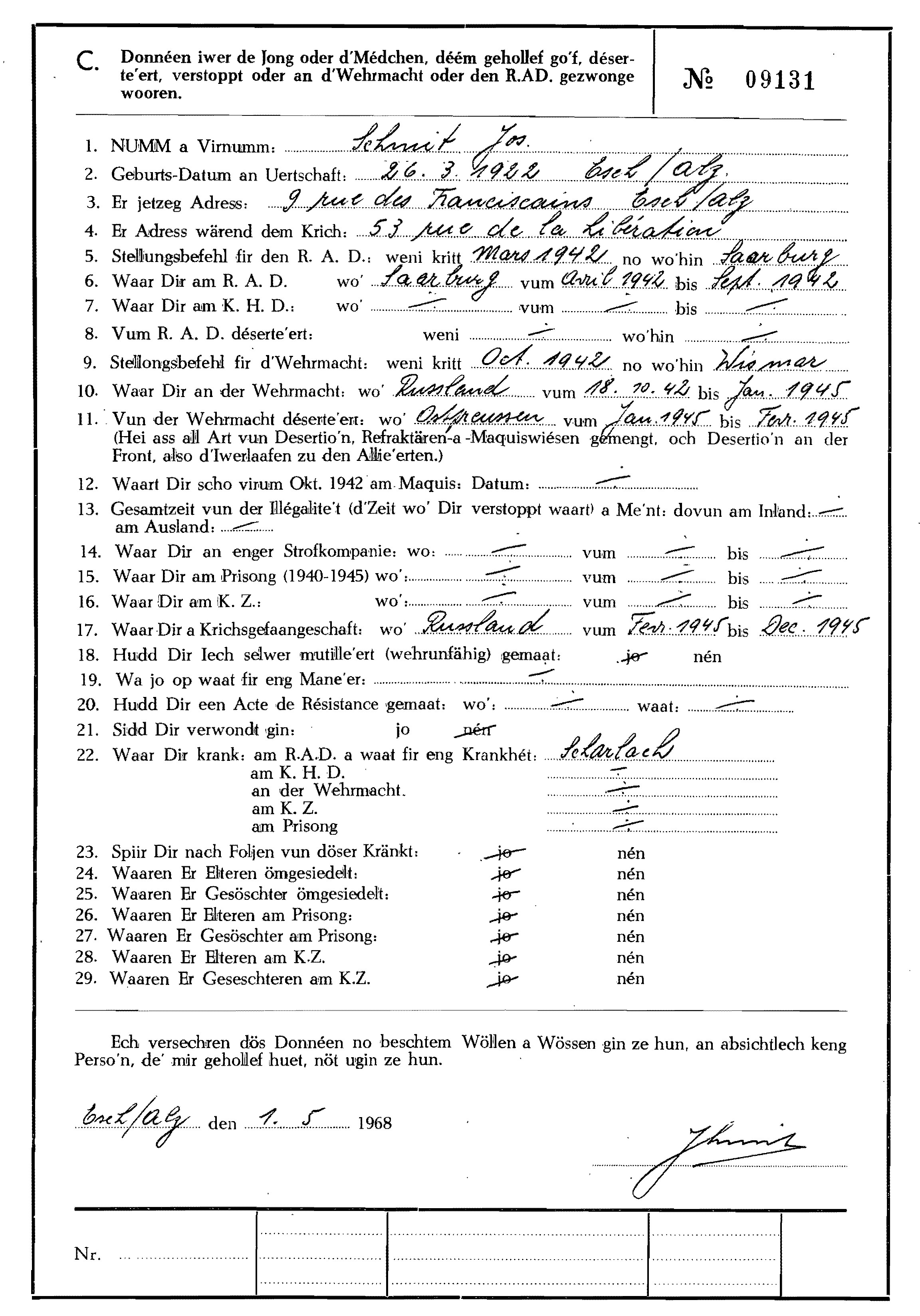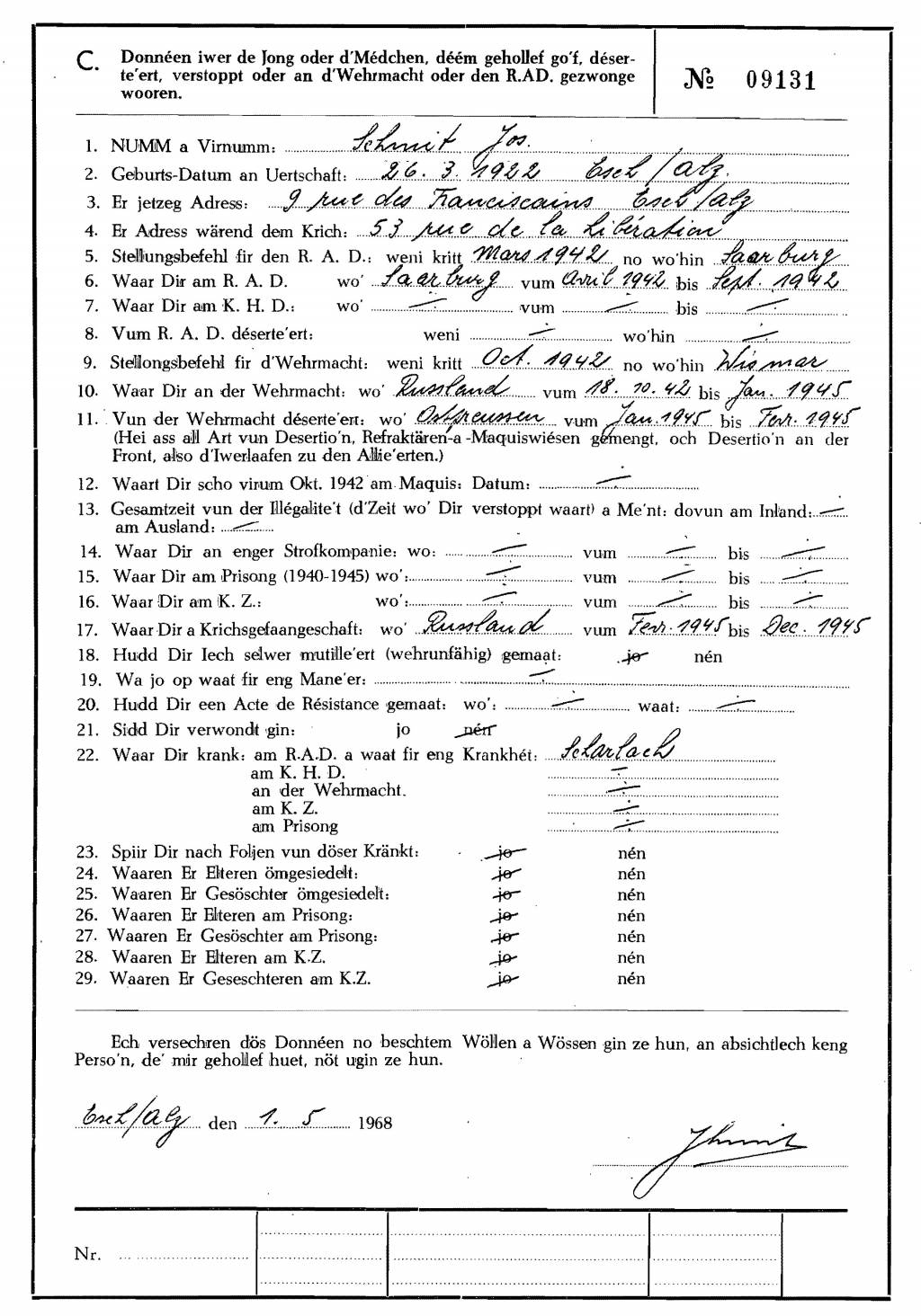 SCHMIT Jos 26031922 Esch sur Alzette 1.jpg Télécharger le document 2.jpg Télécharger le document 3.jpg Télécharger le document