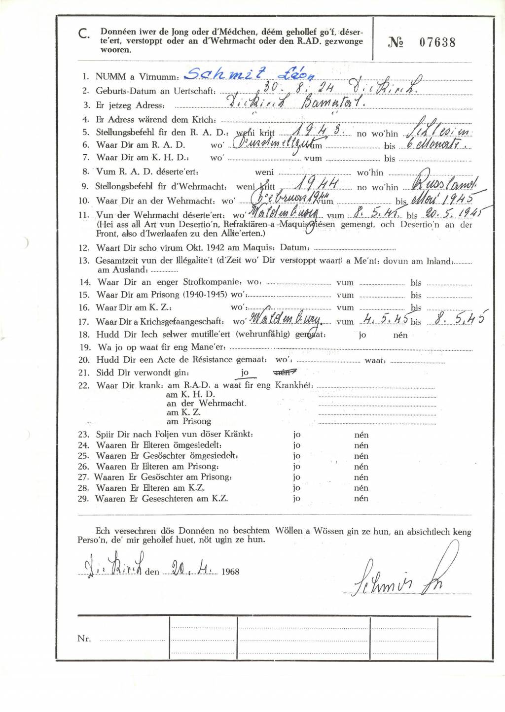 Nom, prénom, nom pendant l'occupation