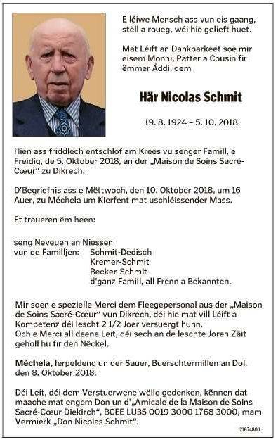 RIP_Schmit_Nicolas_19081924 31_Schmit_Nicolas_19081924_05102018_Diekirch_LW_08102018.jpg Télécharger le document Schmit_Nicolas_Michelau_LW30092014 Schmit_Nicolas_Michelau_19081924_Michelau_LW30092014.jpg Télécharger le document